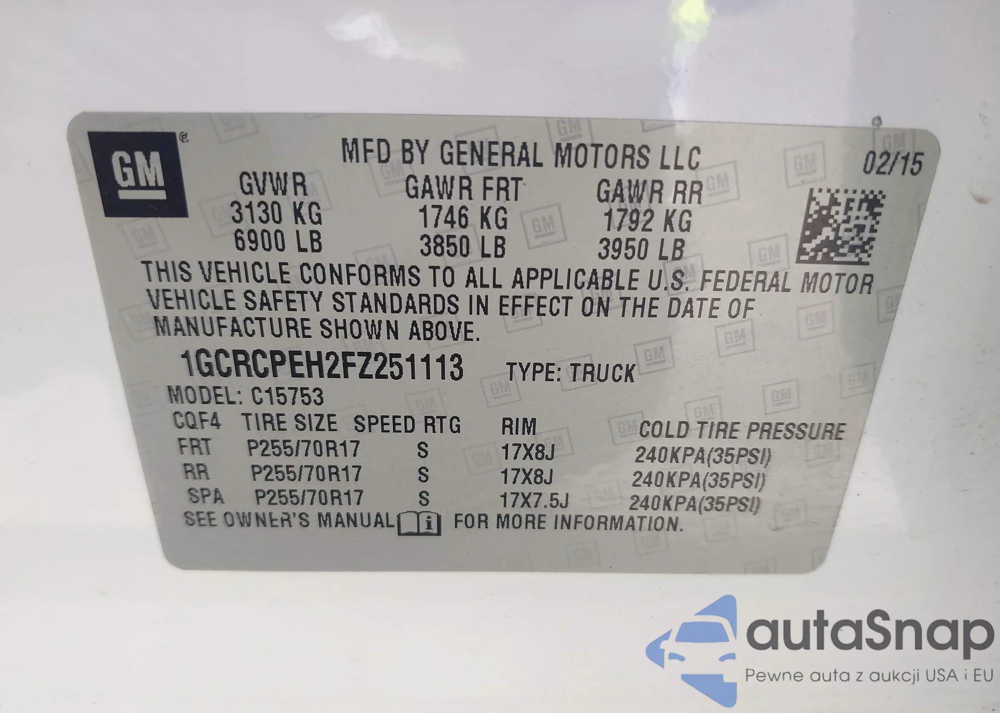 • VIN 1GCRCPEH2FZ251113