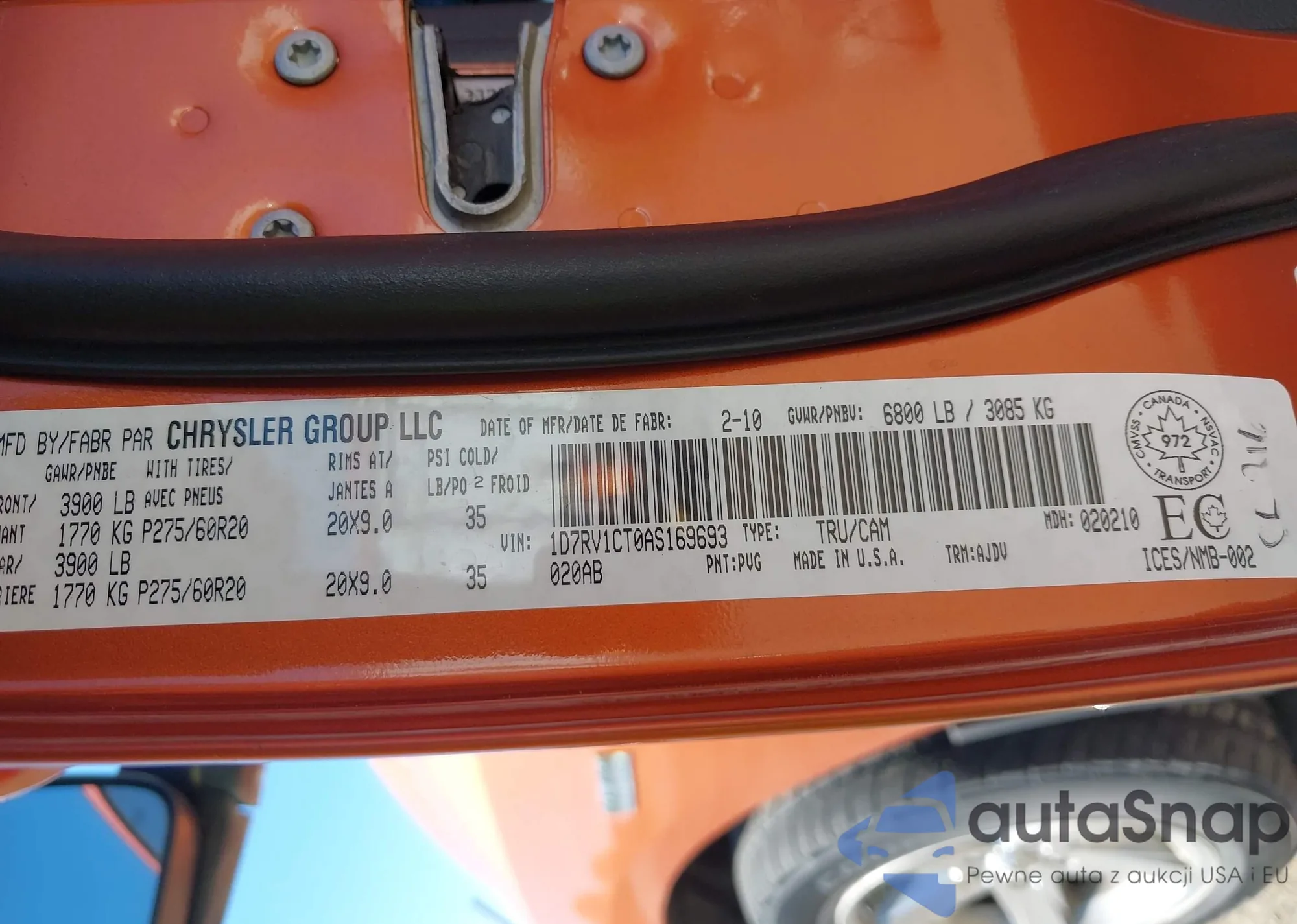 • VIN 1D7RV1CT0AS169693