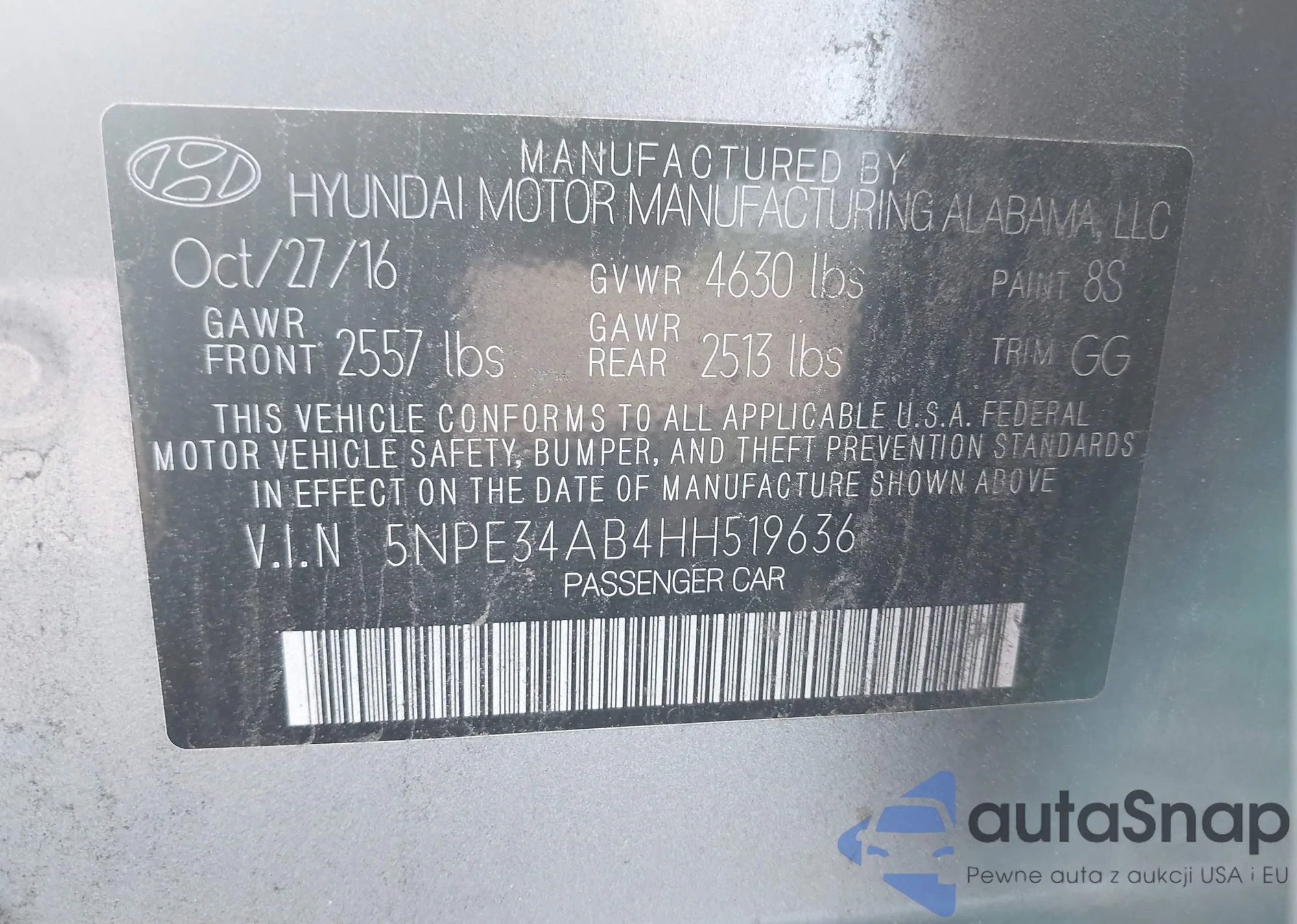 • VIN 5NPE34AB4HH519636