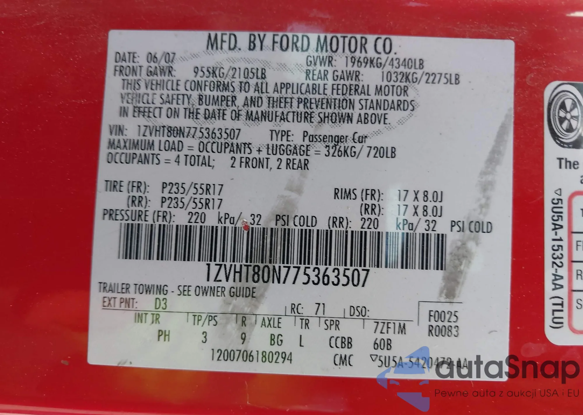 • VIN 1ZVHT80N775363507