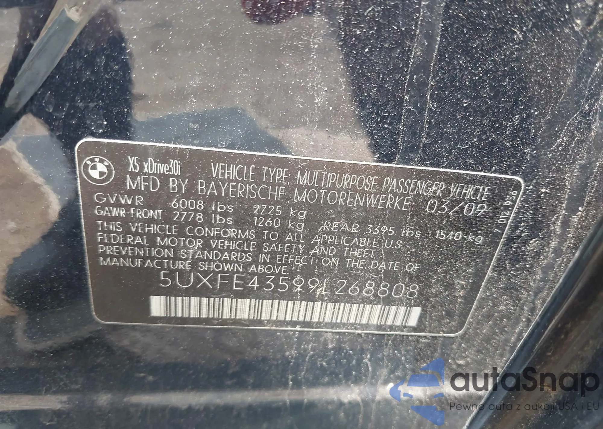 LOT: 42425220 VIN: 5UXFE43599L268808