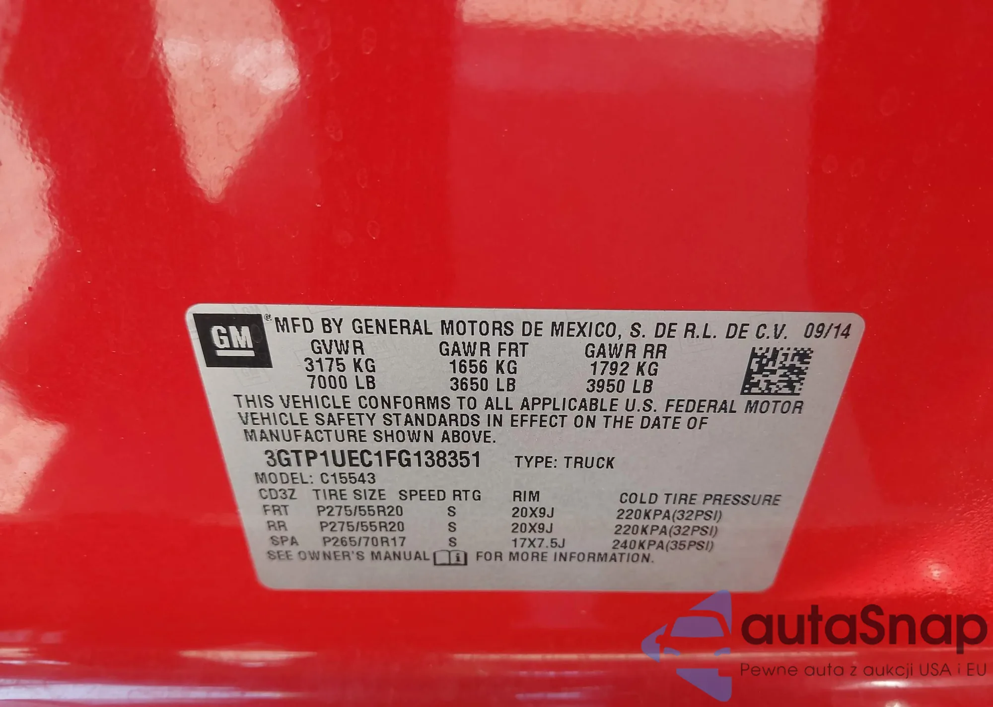 LOT: 42443673 VIN: 3GTP1UEC1FG138351