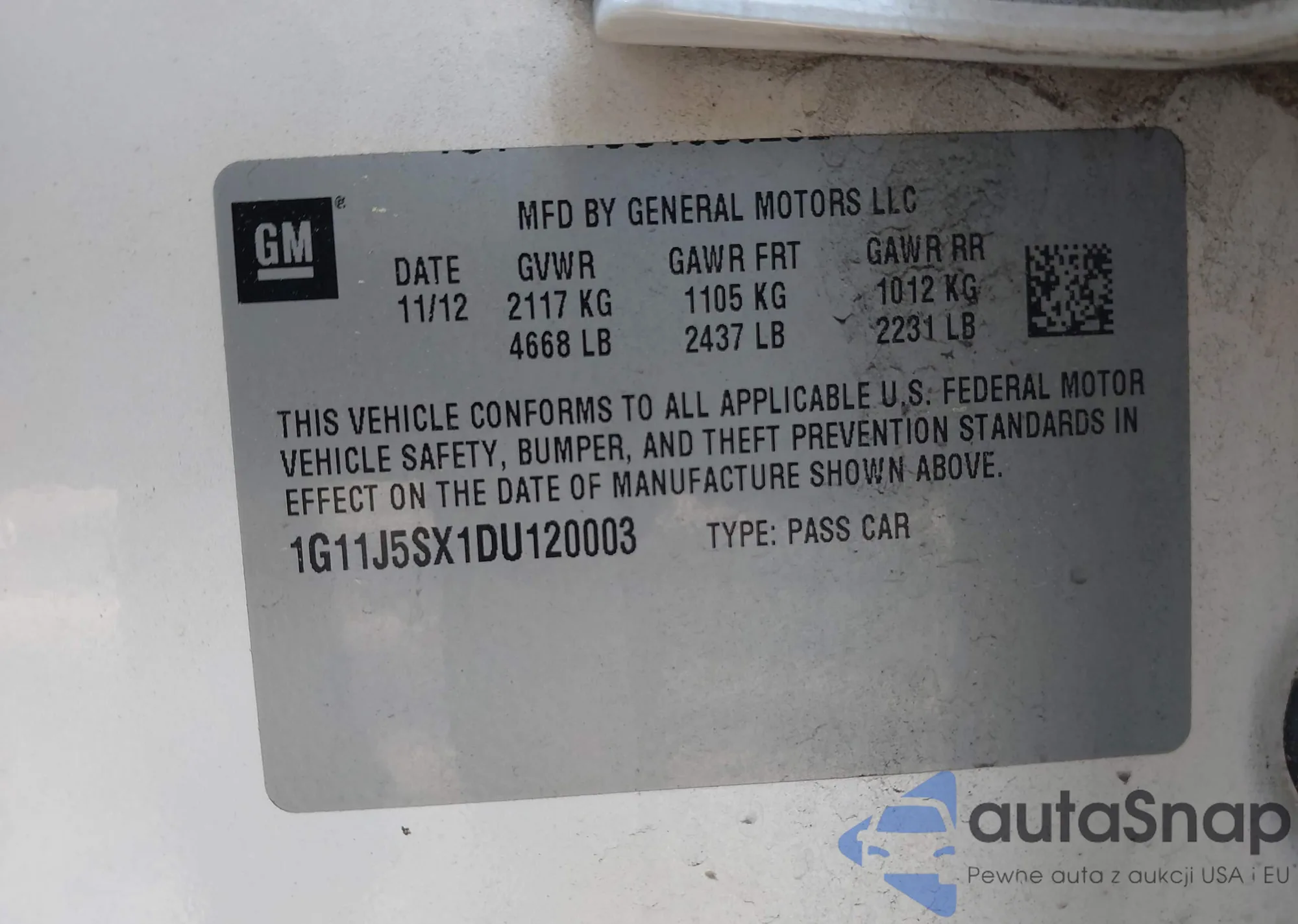 LOT: 42072229 VIN: 1G11J5SX1DU120003