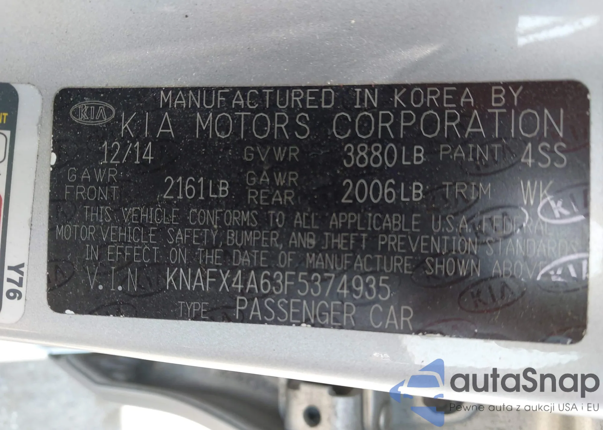 • VIN KNAFX4A63F5374935