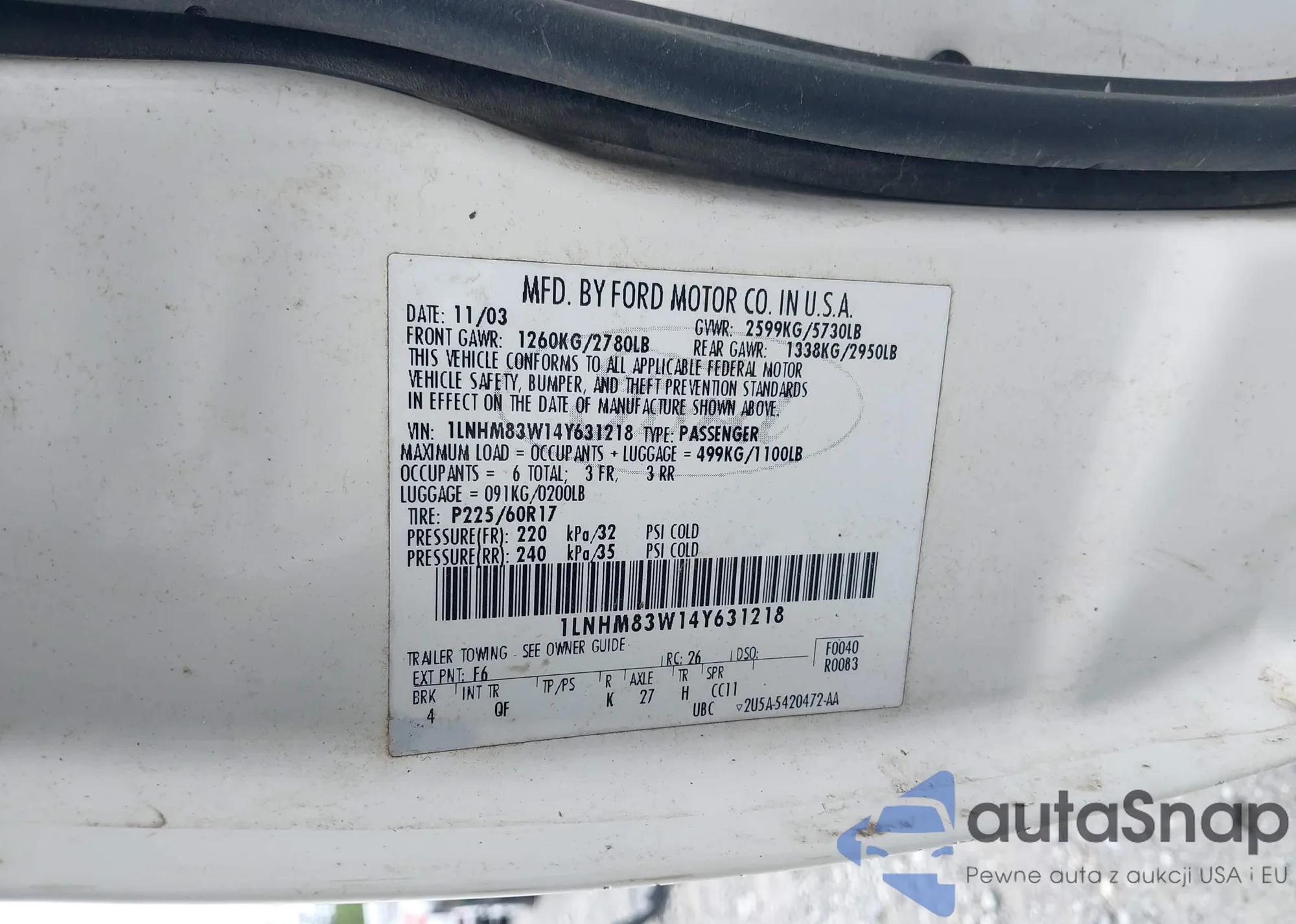 • VIN 1LNHM83W14Y631218