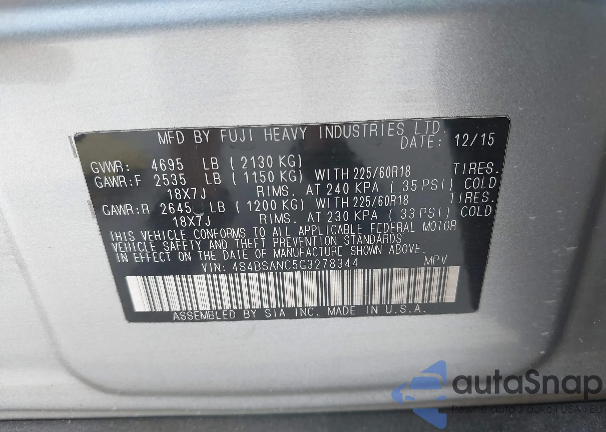 LOT: 41861653 VIN: 1HGCP2F62BA115875