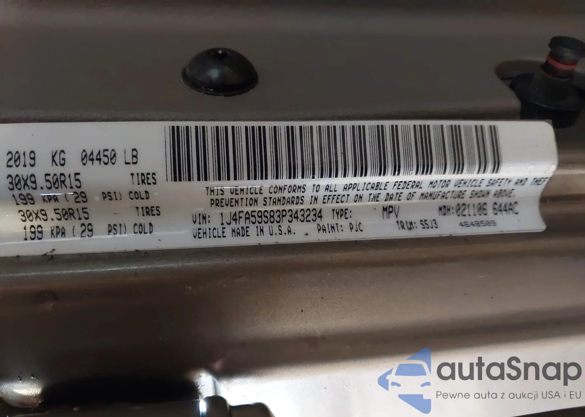 LOT: 41644074 VIN: 1J4FA59S83P343234