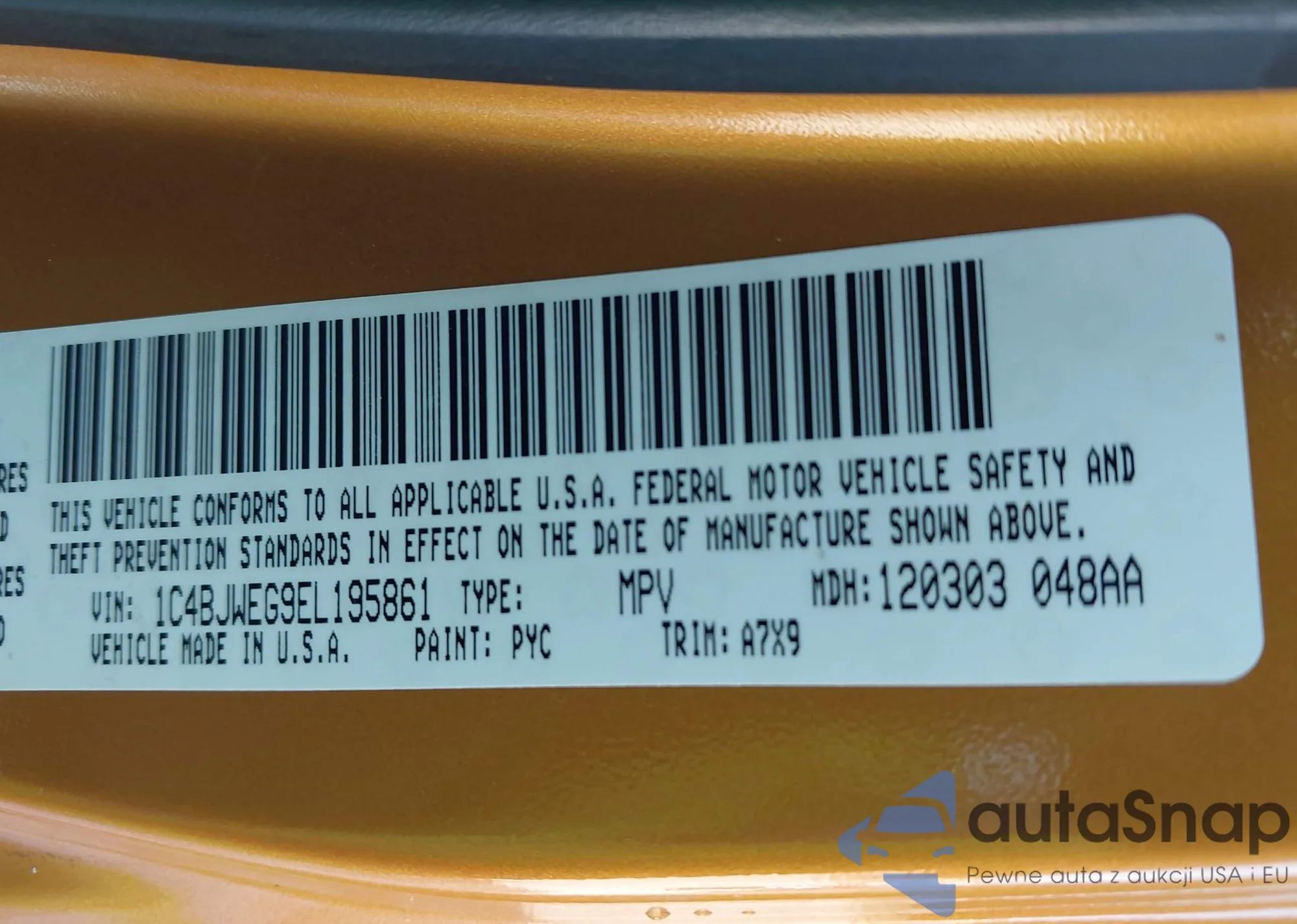 • VIN 1C4BJWEG9EL195861