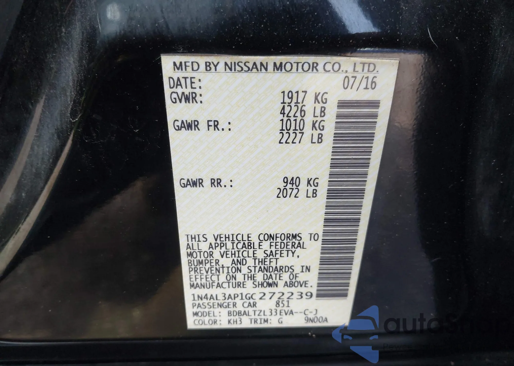 • VIN 1N4AL3AP1GC272239