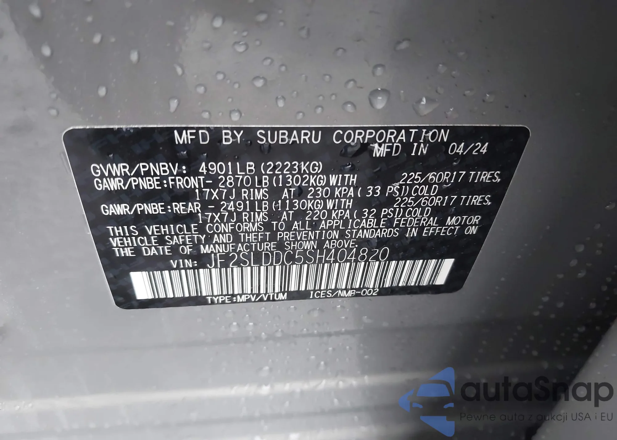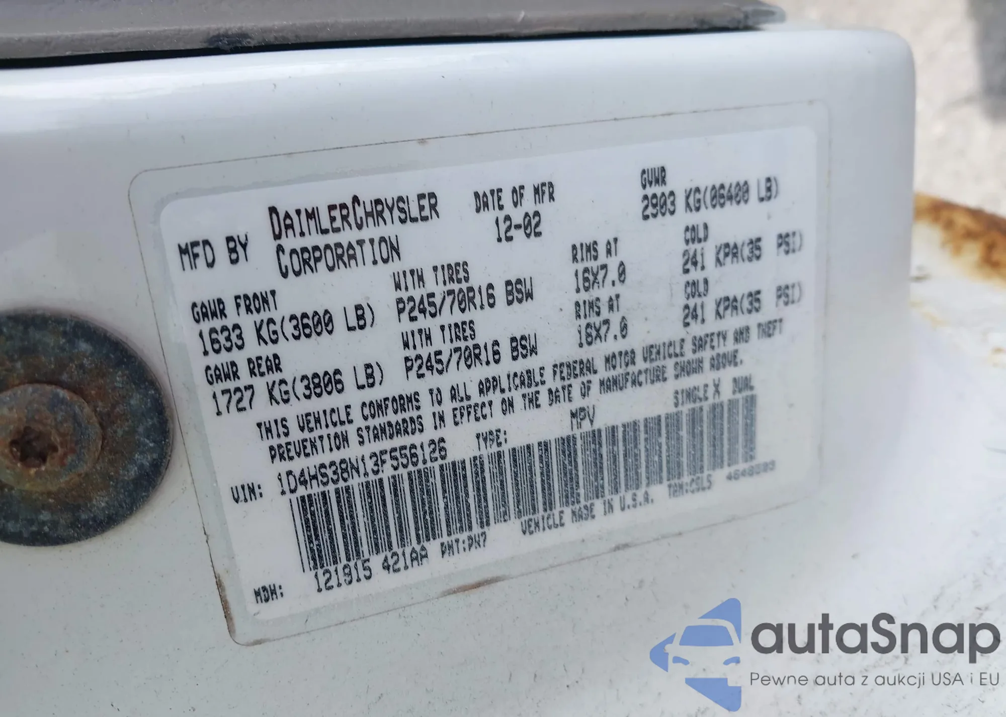 LOT: 42139393 VIN: 1C4PJMDS5HW636307