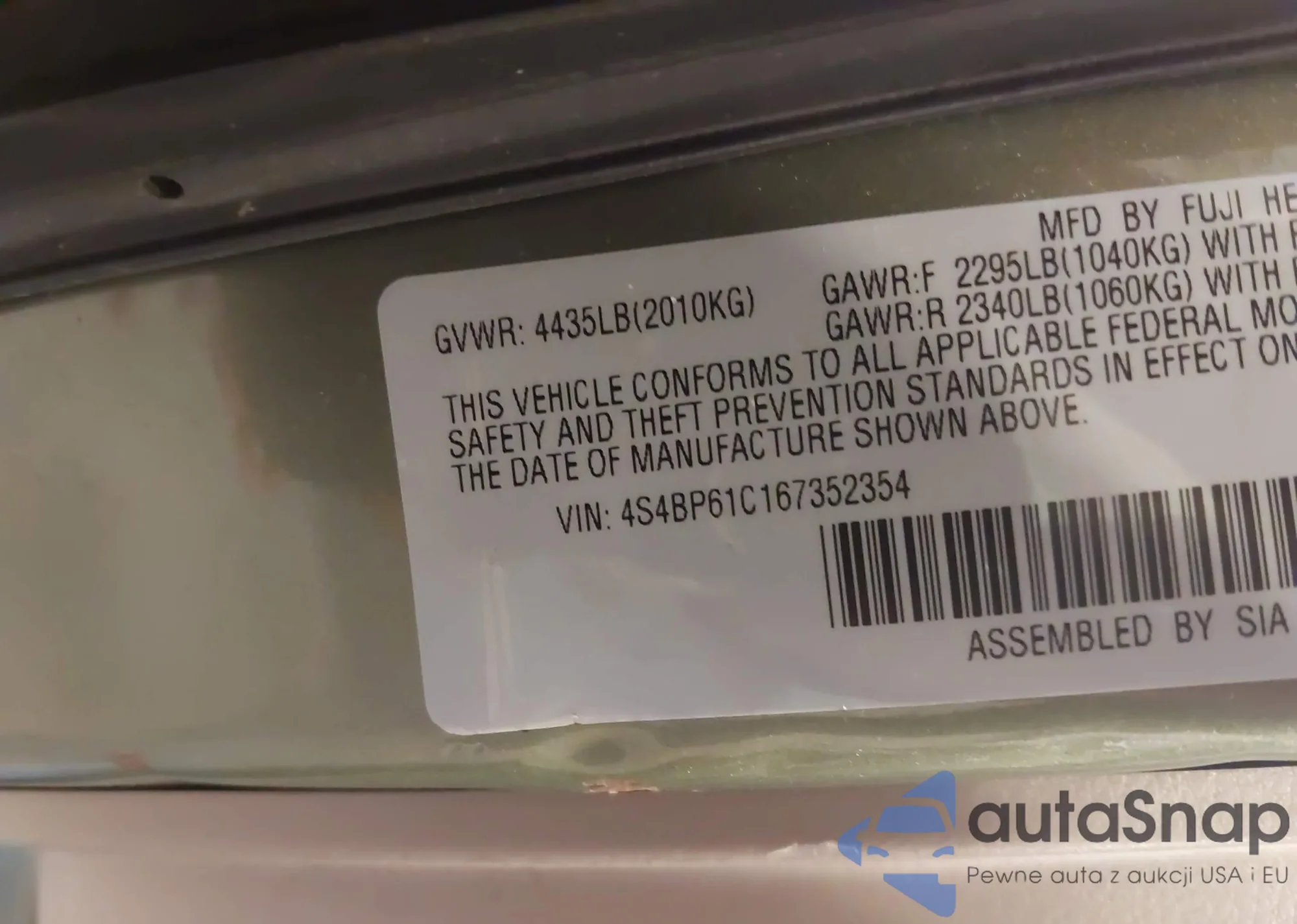 • VIN 4S4BP61C167352354