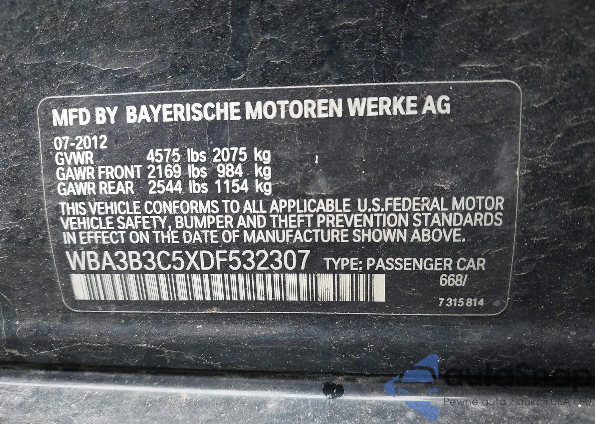 LOT: 42192872 VIN: WBA3B3C5XDF532307