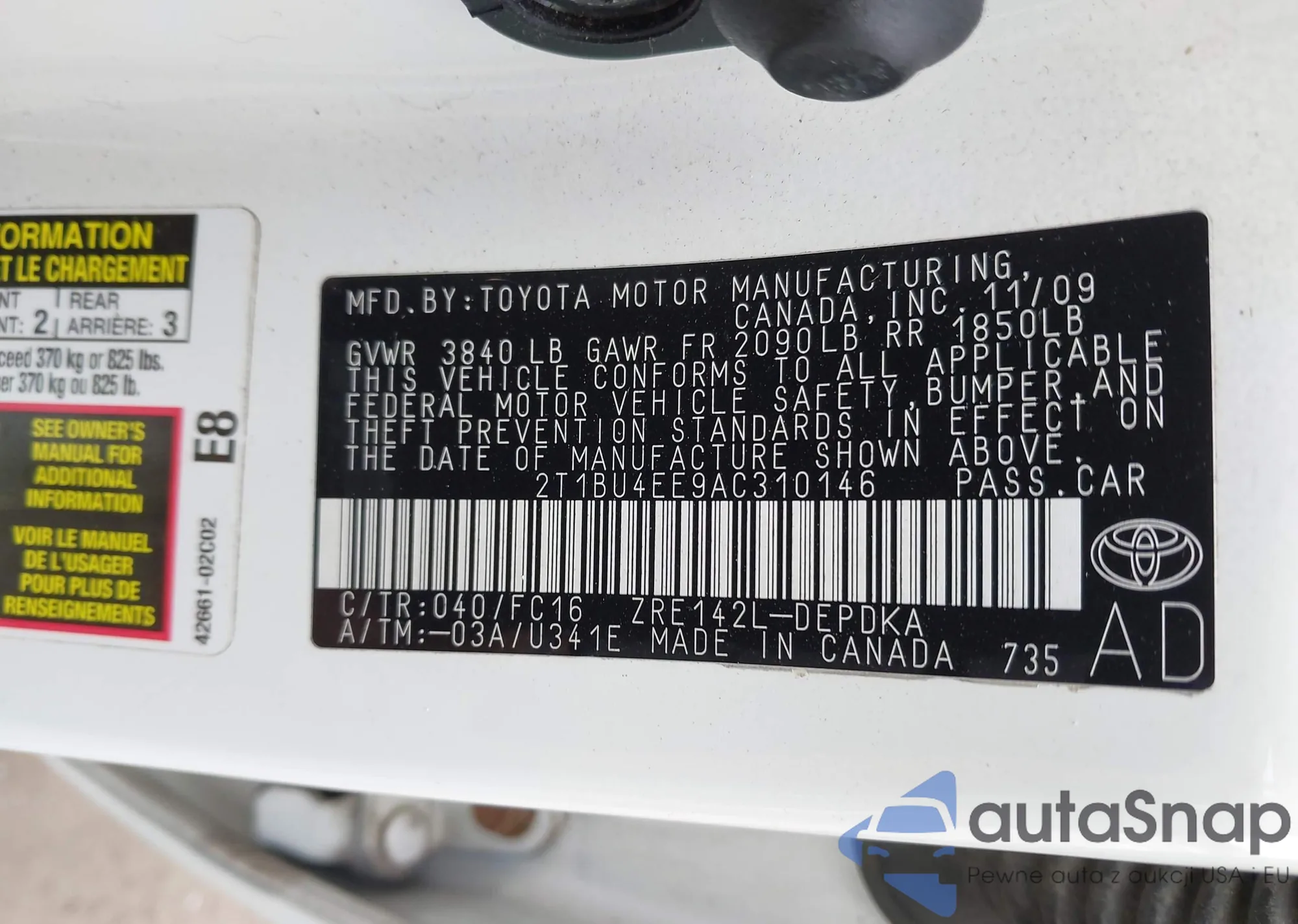 • VIN 2T1BU4EE9AC310146