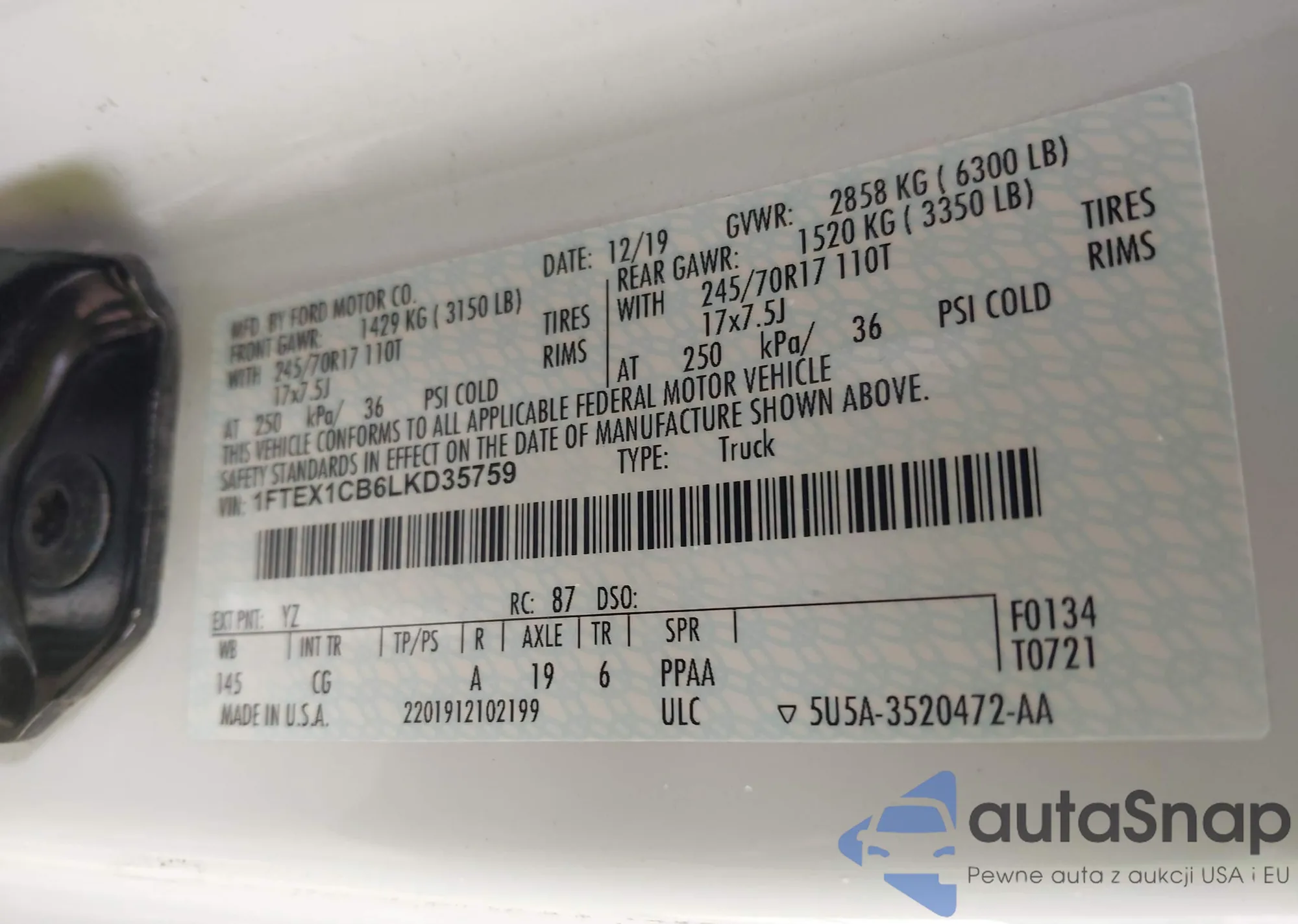 LOT: 42127130 VIN: 1FTEX1CB6LKD35759