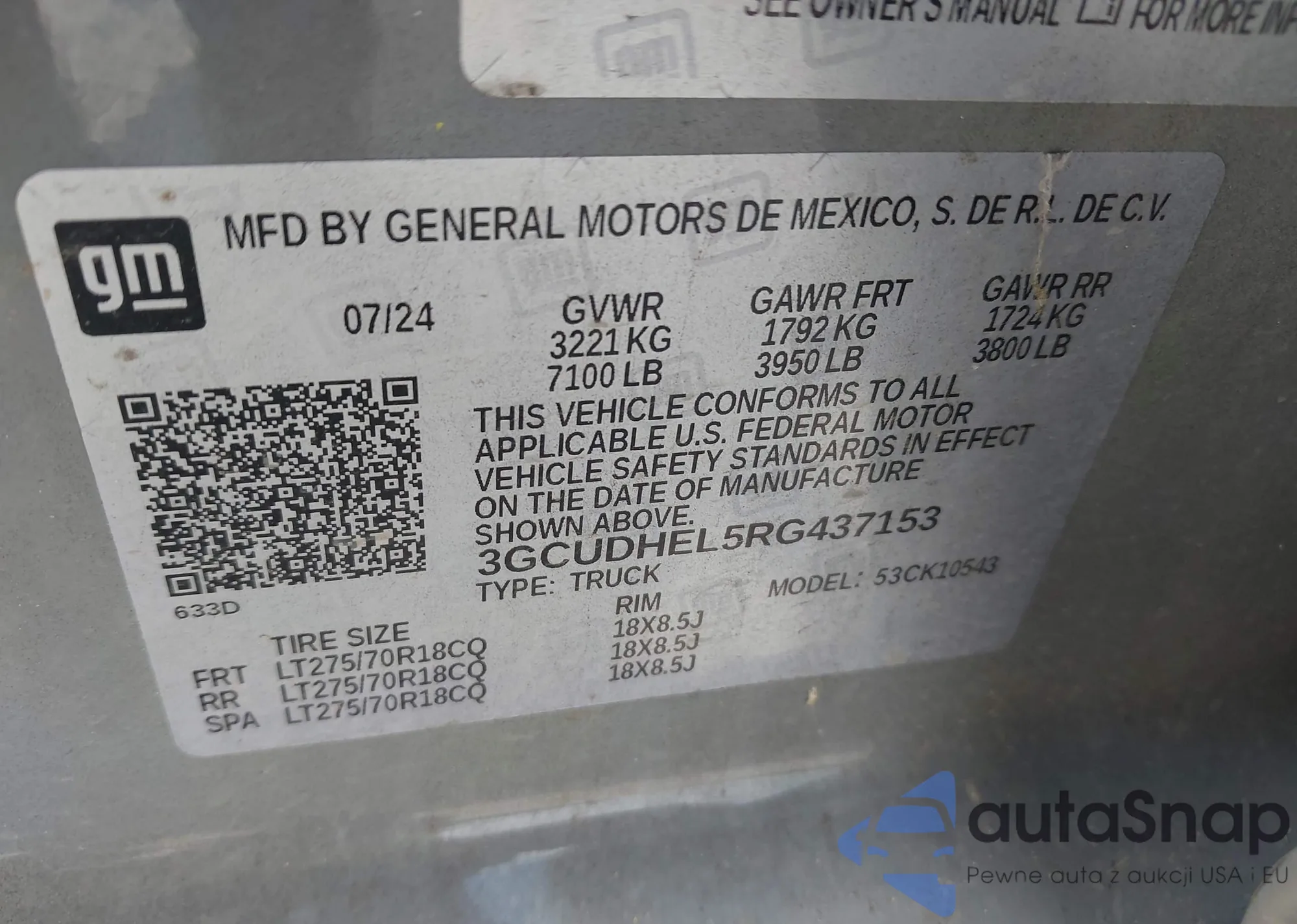 LOT: 42152215 VIN: 3GCUDHEL5RG437153