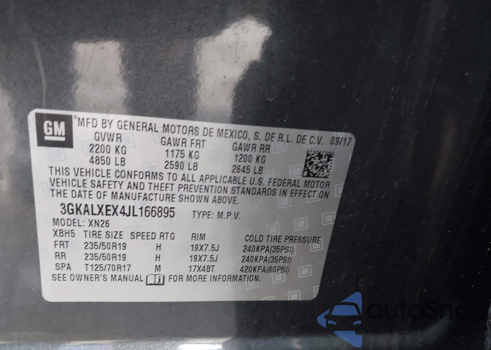 • VIN 3GKALXEX4JL166895