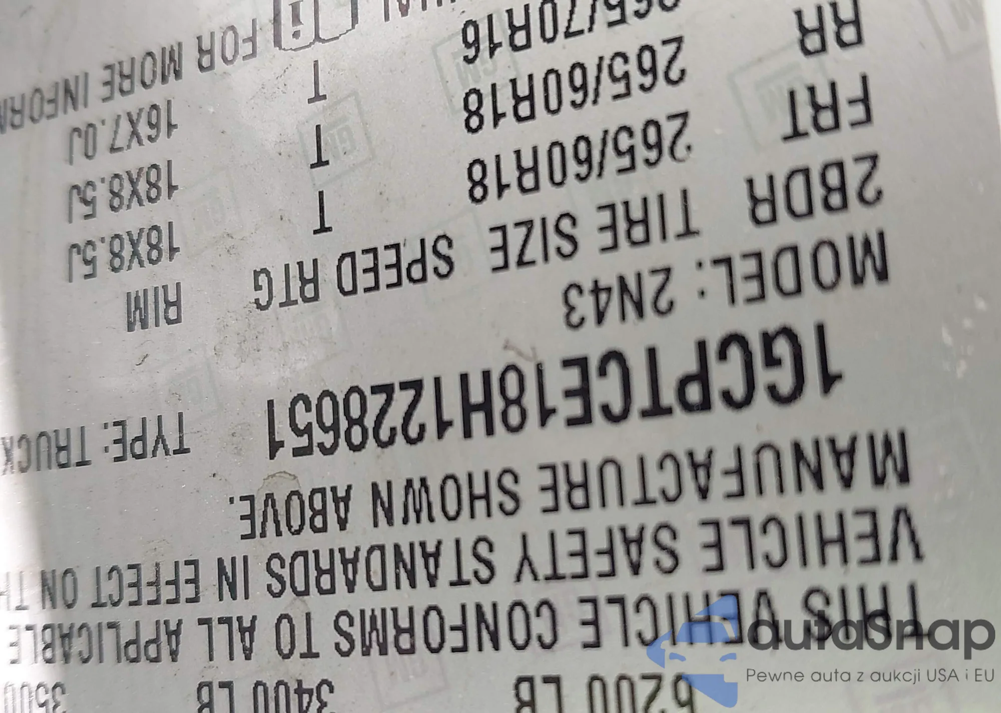 LOT: 42284579 VIN: 1GCPTCE18H1228651