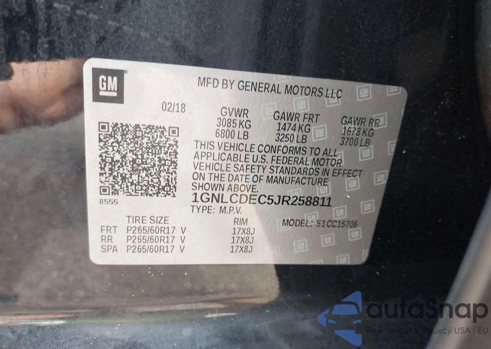 • VIN 1GNLCDEC5JR258811