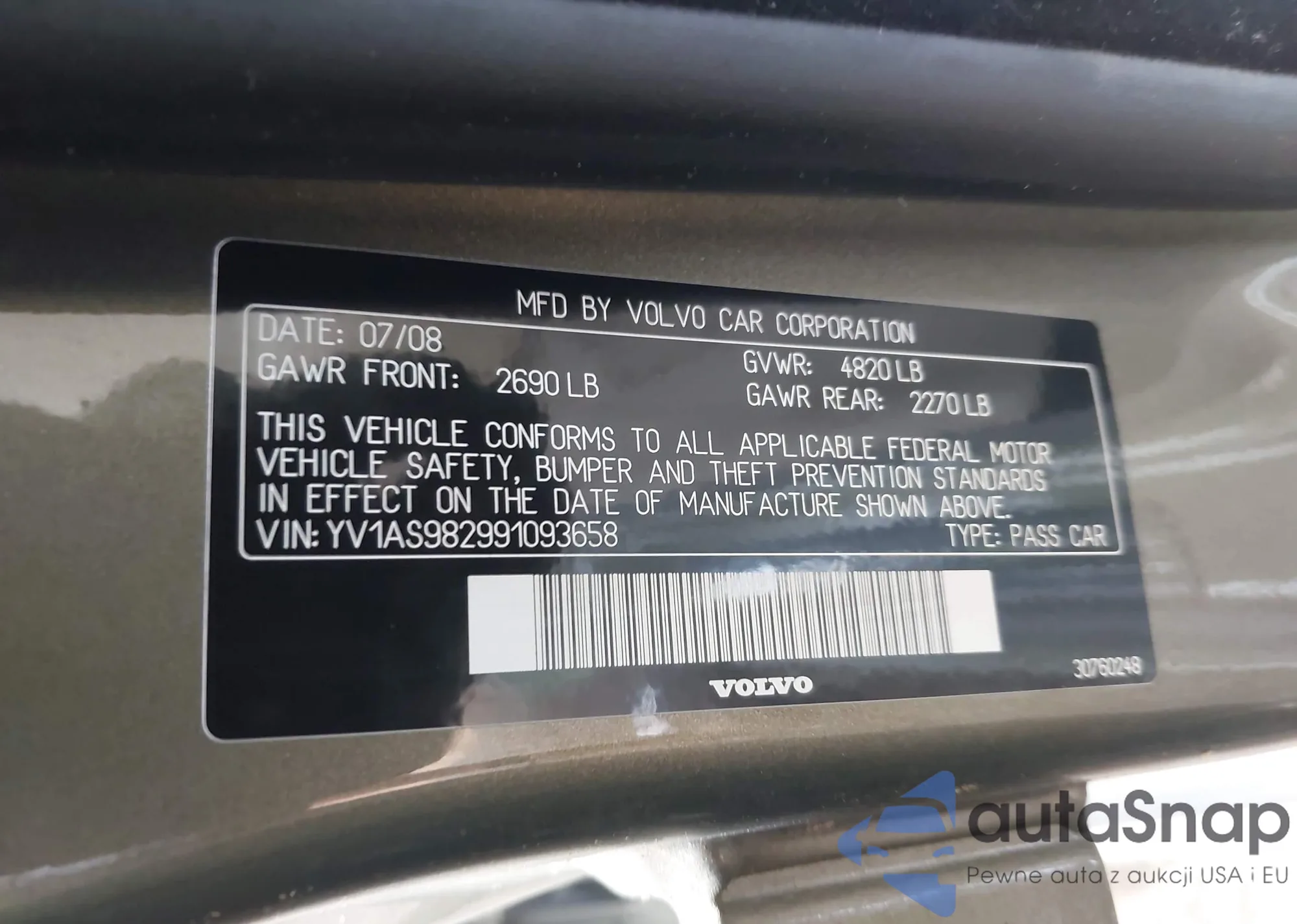 • VIN YV1AS982991093658