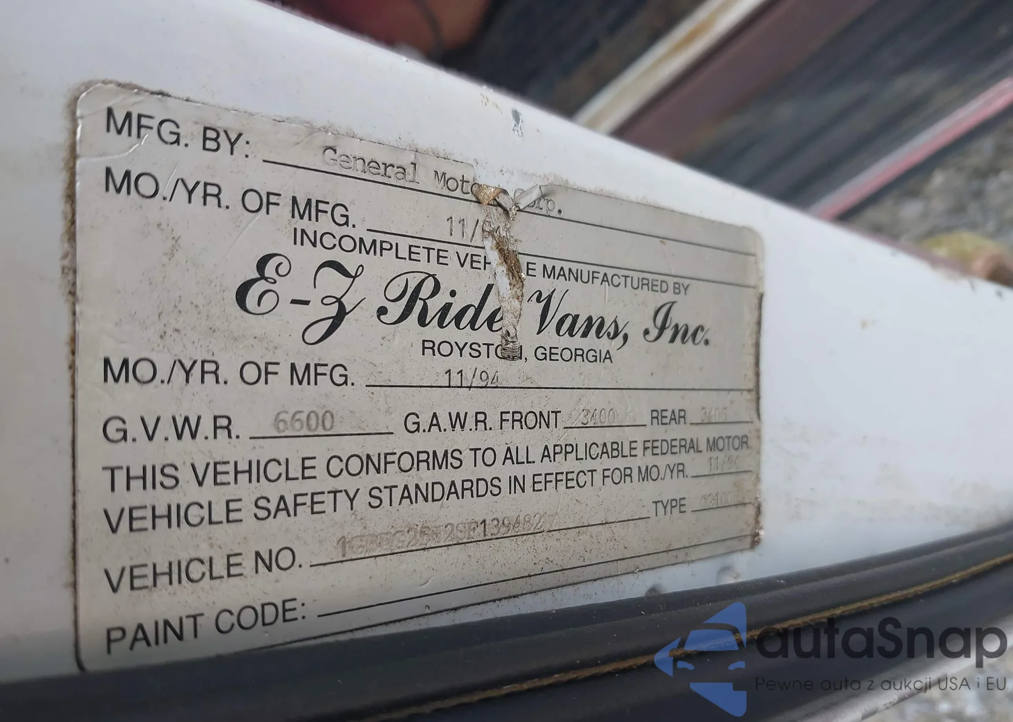 • VIN 1G6AB5RAXE0149887