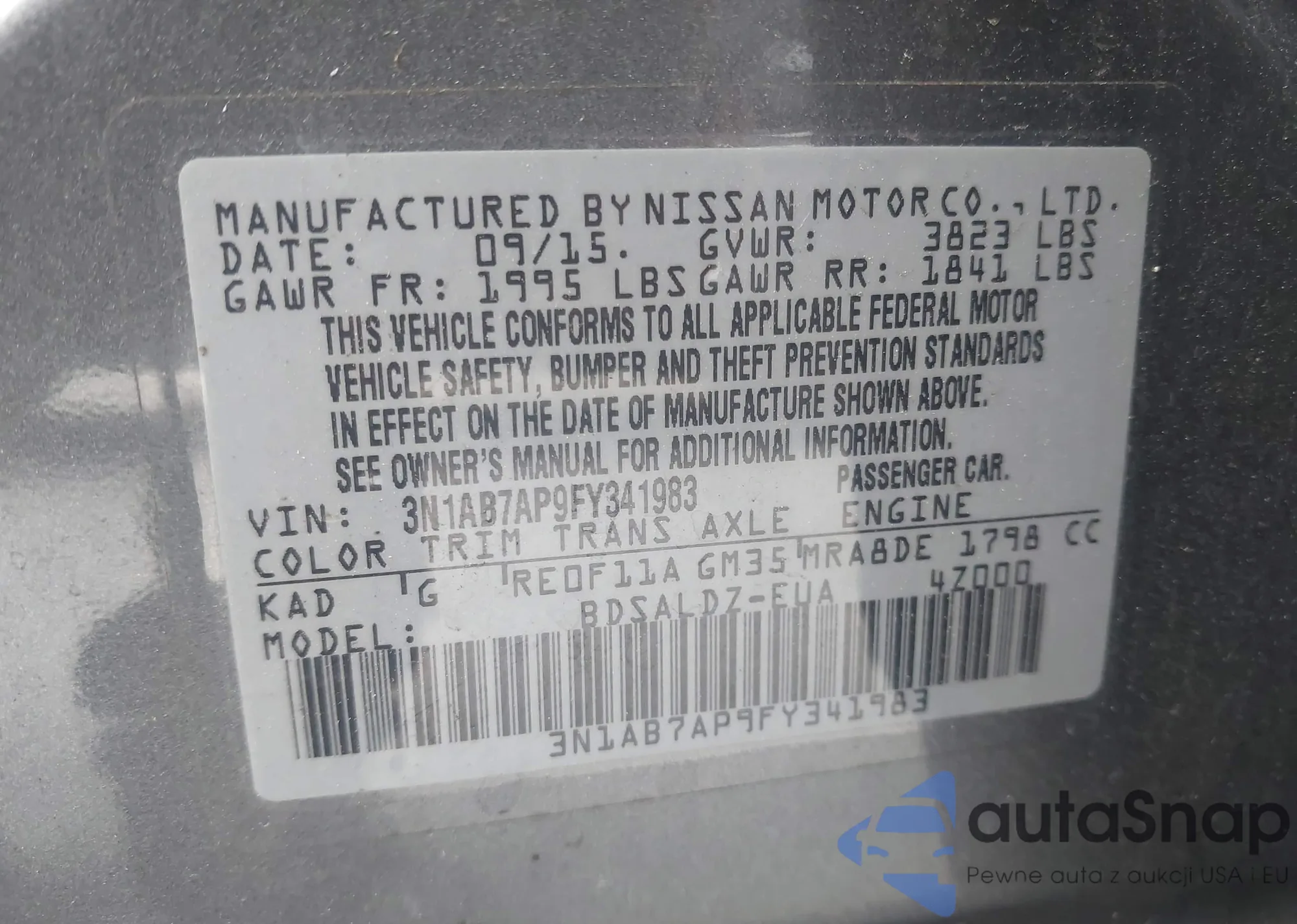 LOT: 41878393 VIN: 5XXGM4A75FG380675