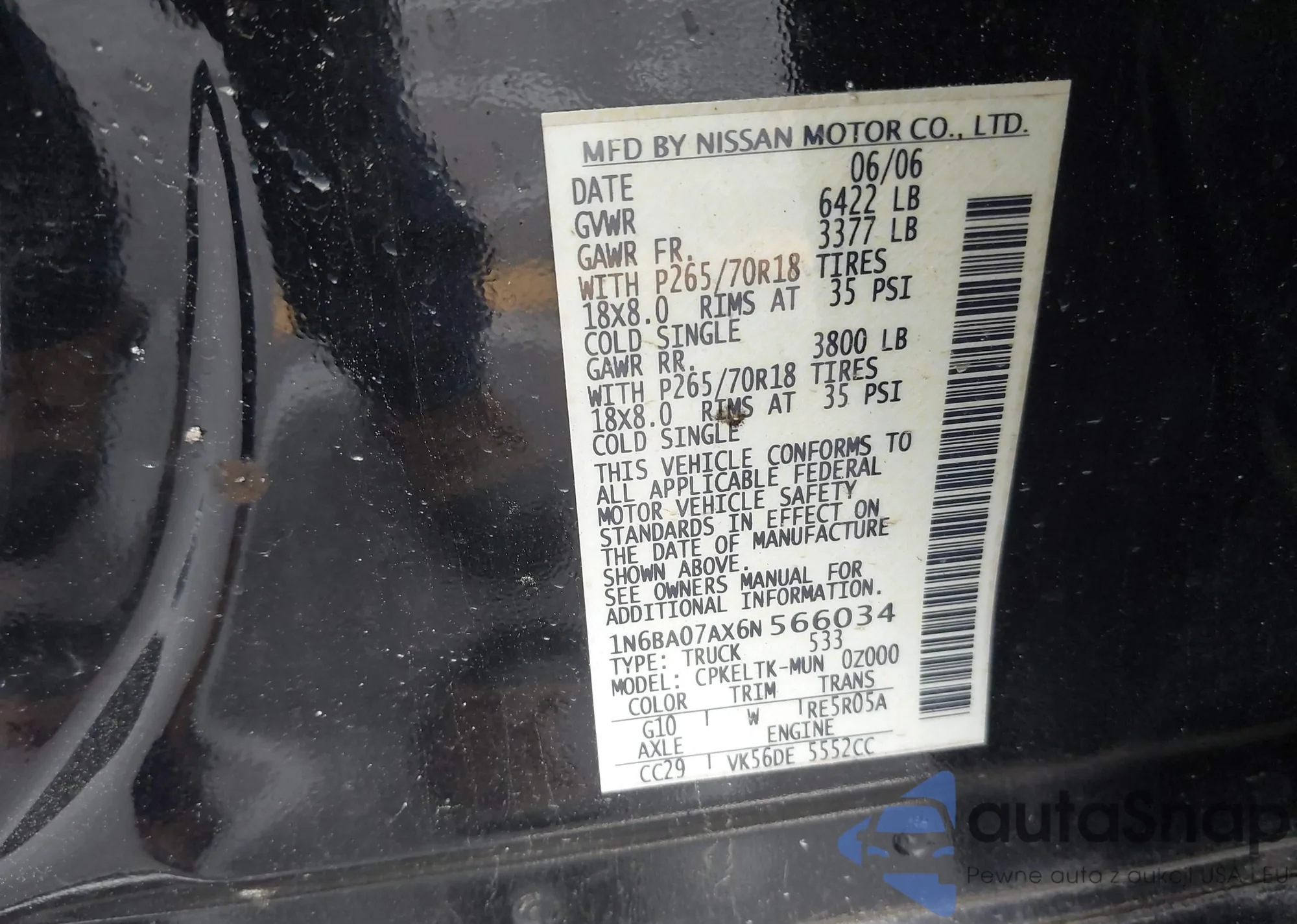 • VIN 1N6BA07AX6N566034