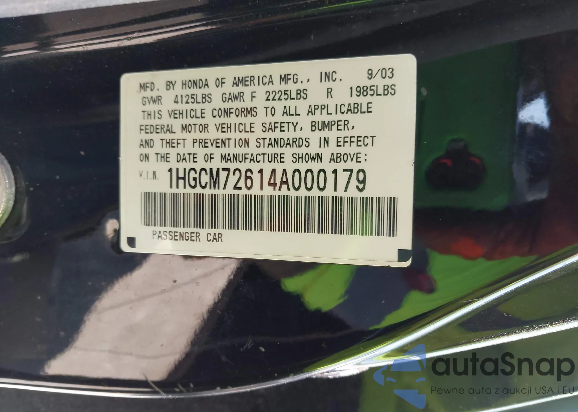 LOT: 42422163 VIN: 1HGCM72614A000179