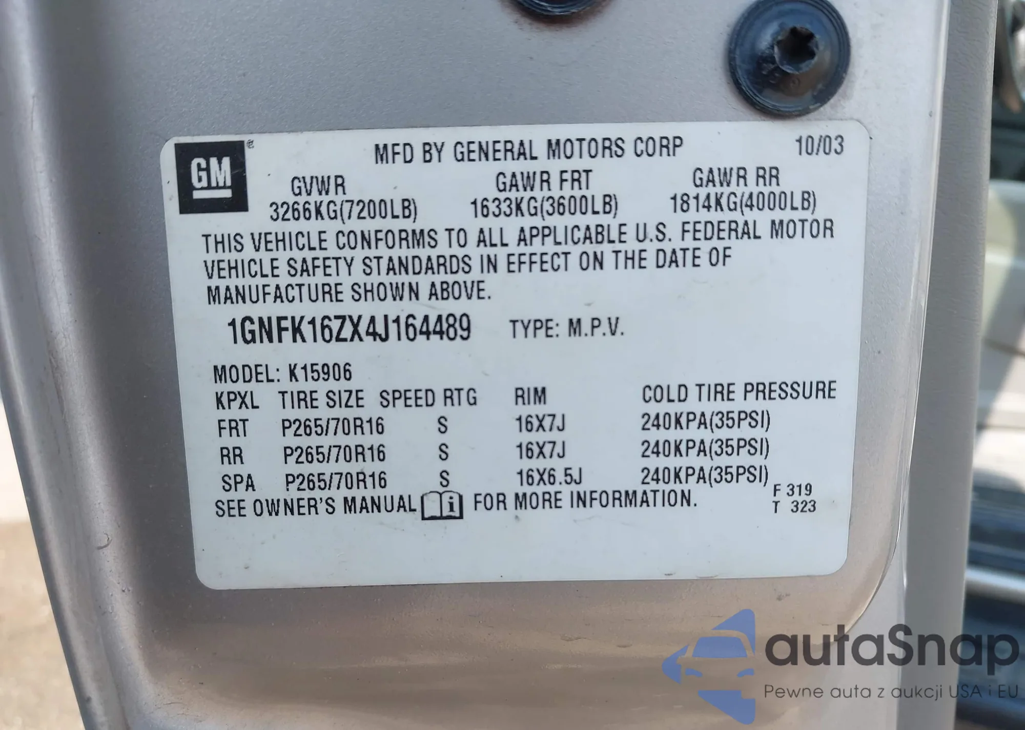 • VIN 1GNFK16ZX4J164489