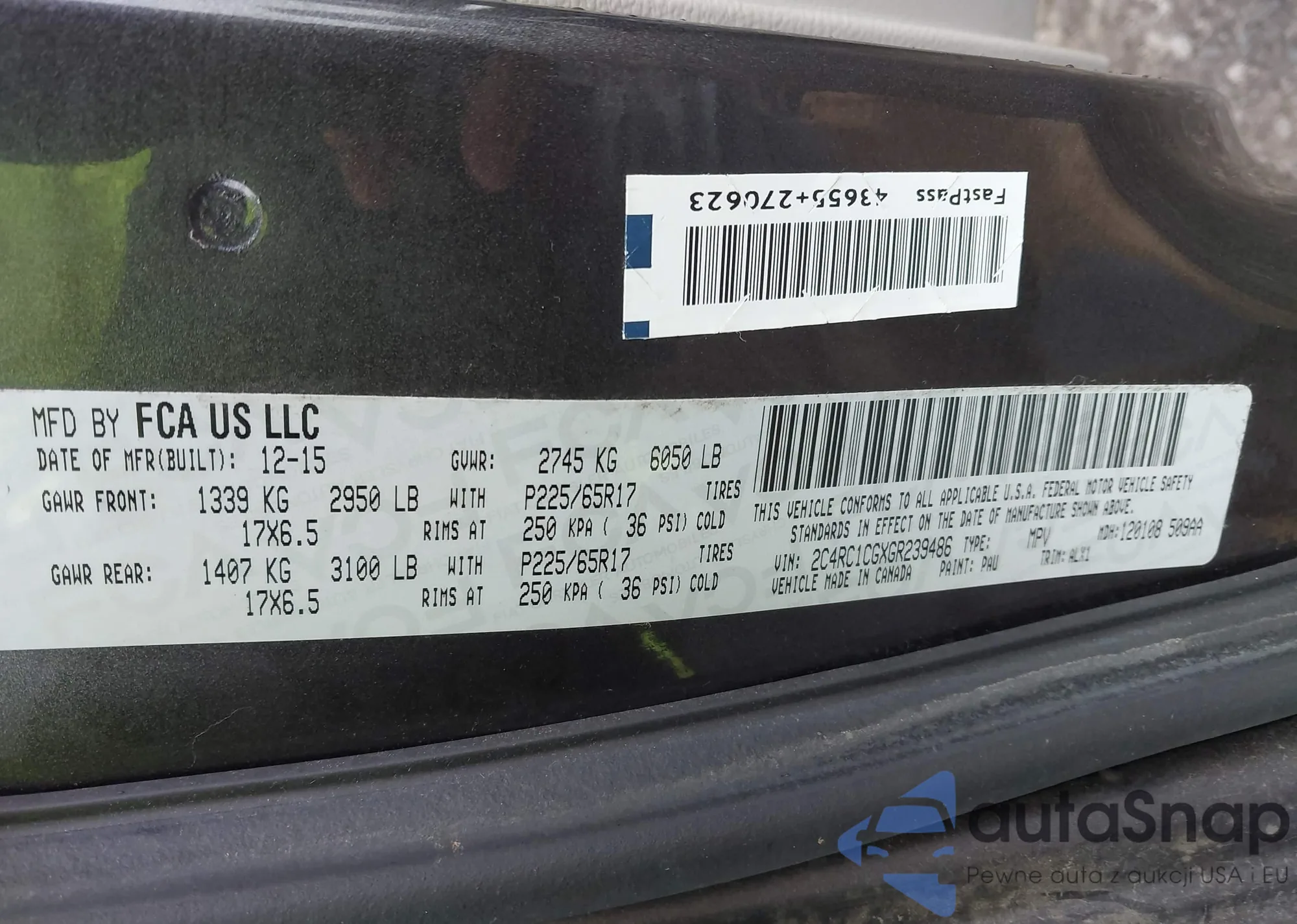 • VIN 2C4RC1CGXGR239486