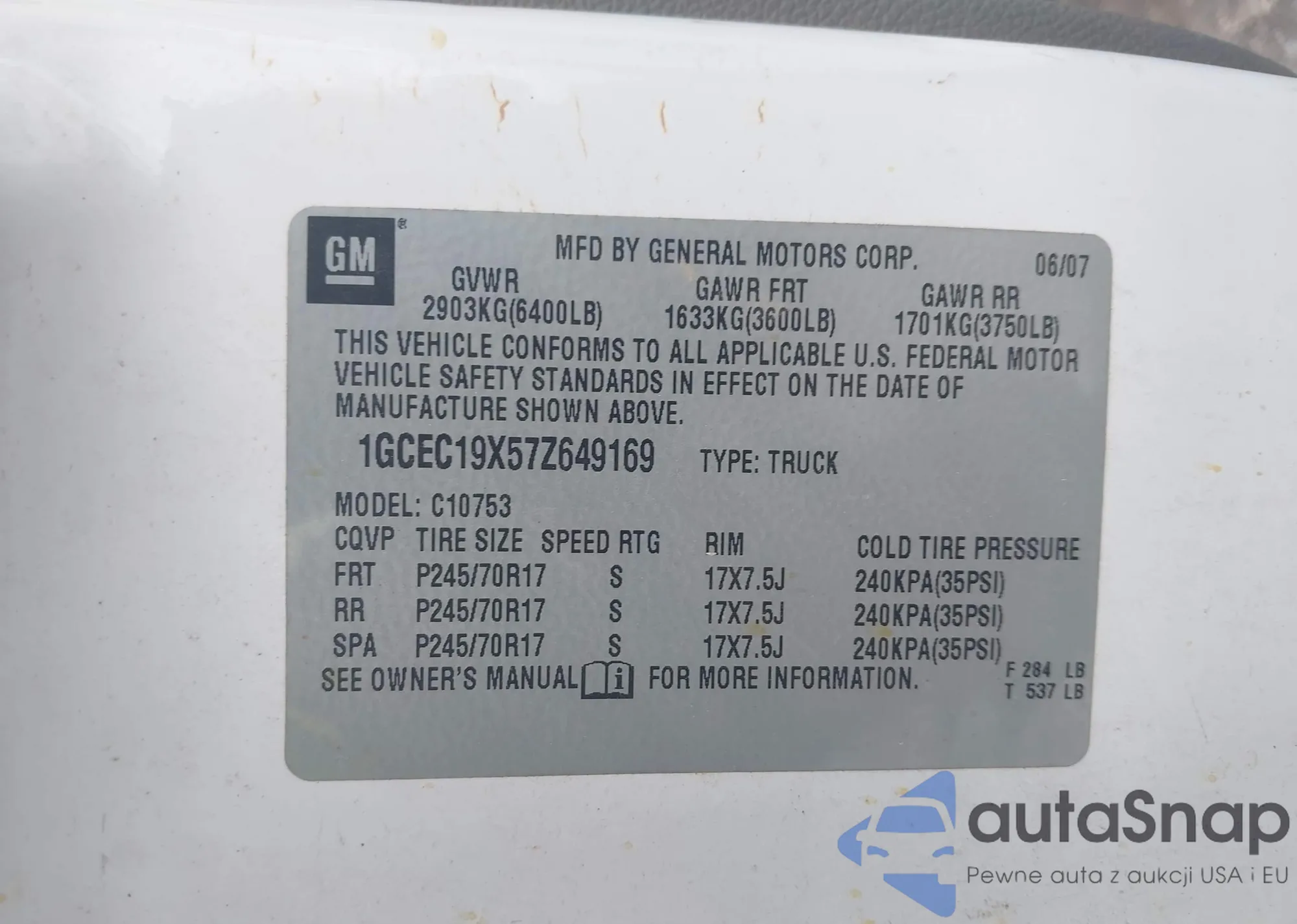 • VIN 1G1PA5SG6E7261479