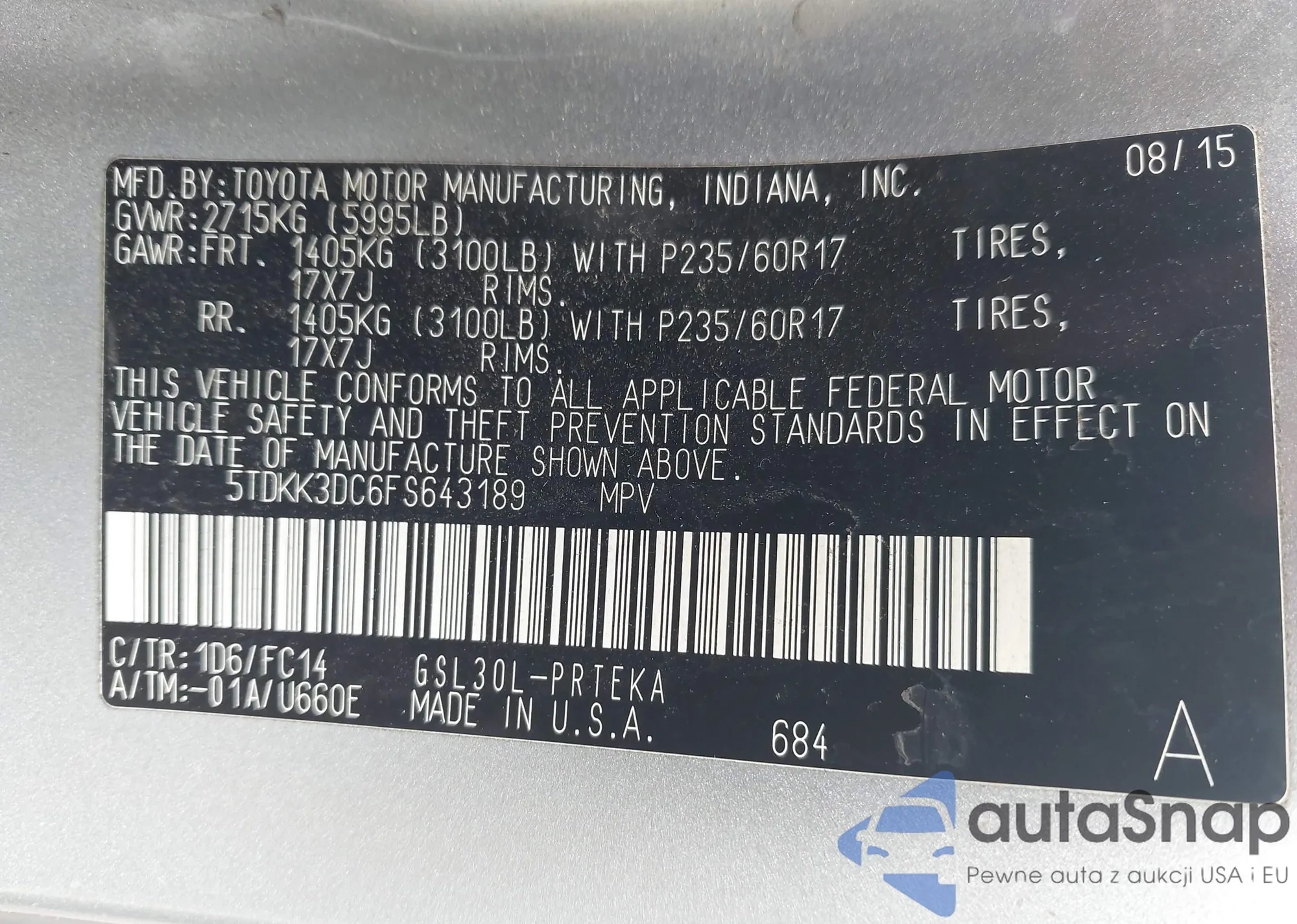 LOT: 42348313 VIN: 5TDKK3DC6FS643189