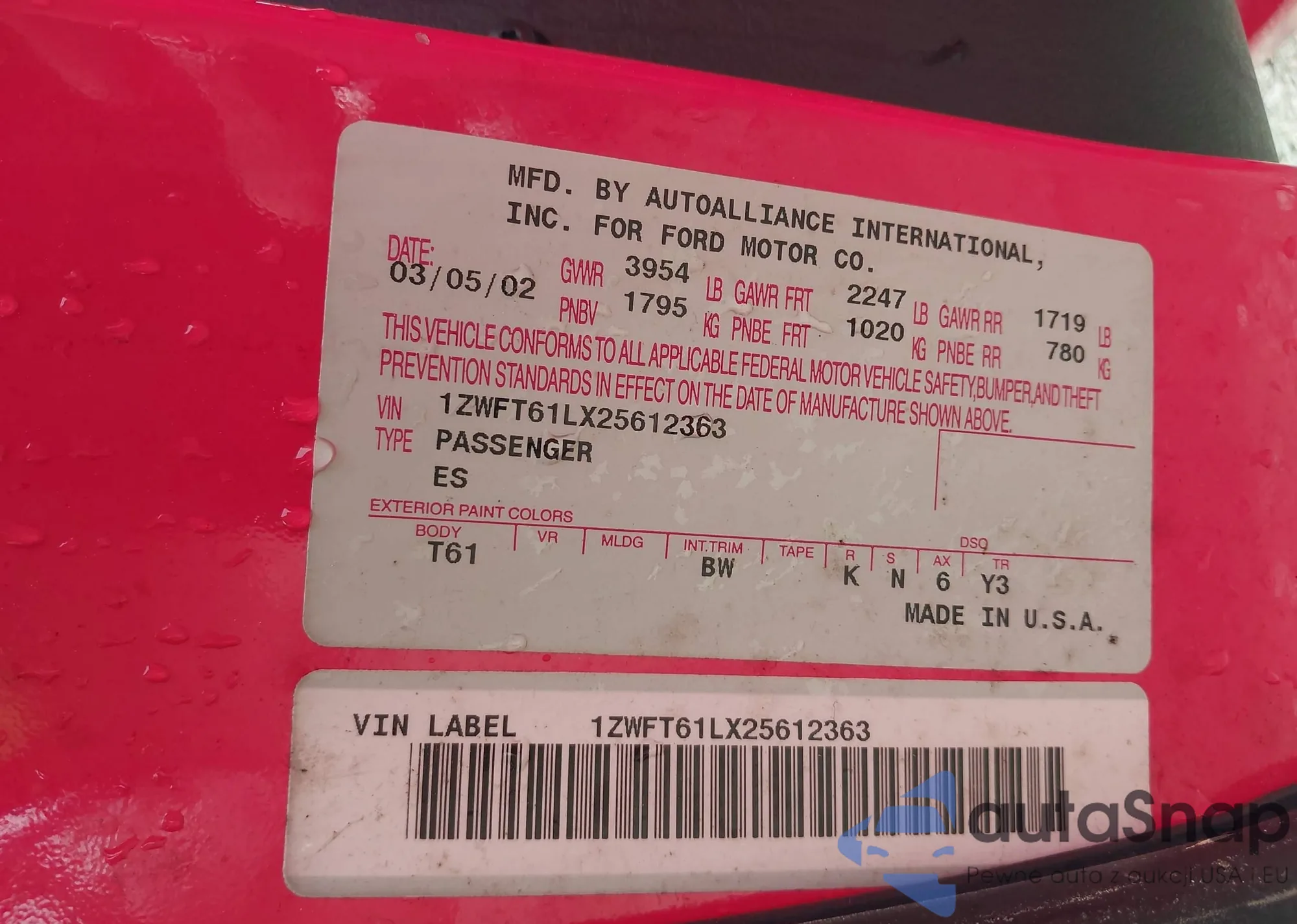 LOT: 41954995 VIN: 1ZWFT61LX25612363