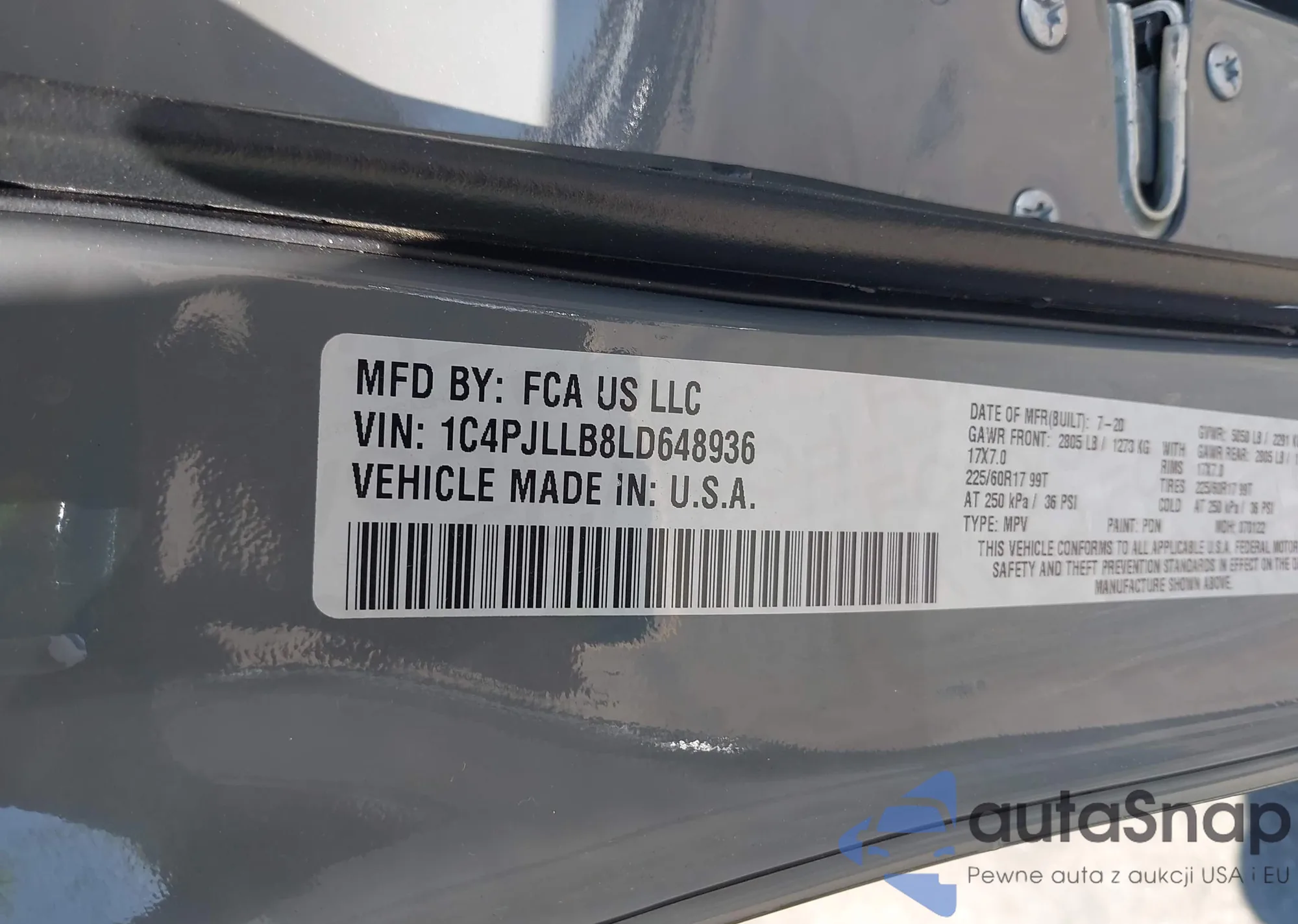• VIN 1C4PJLLB8LD648936