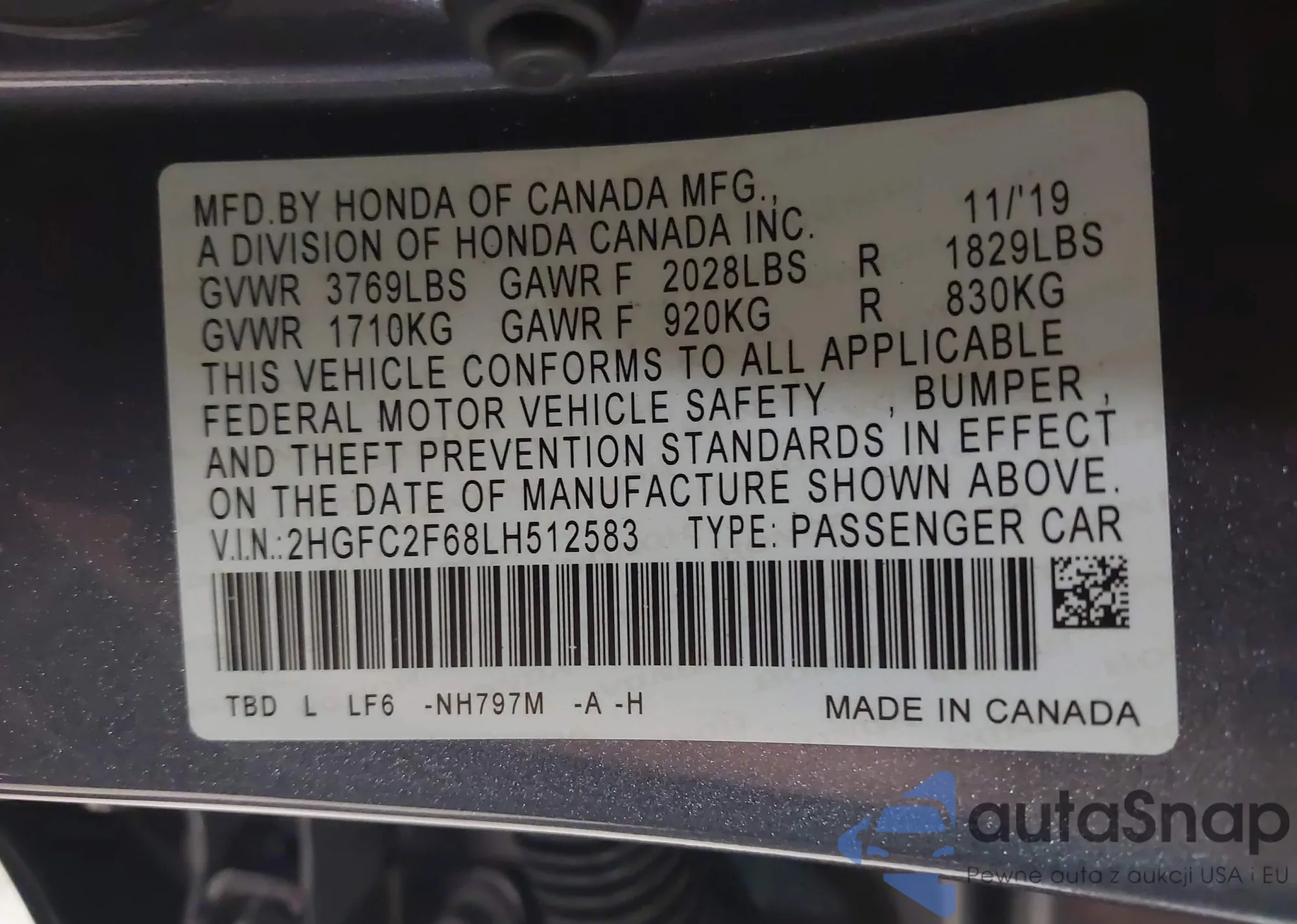 • VIN 2HGFC2F68LH512583