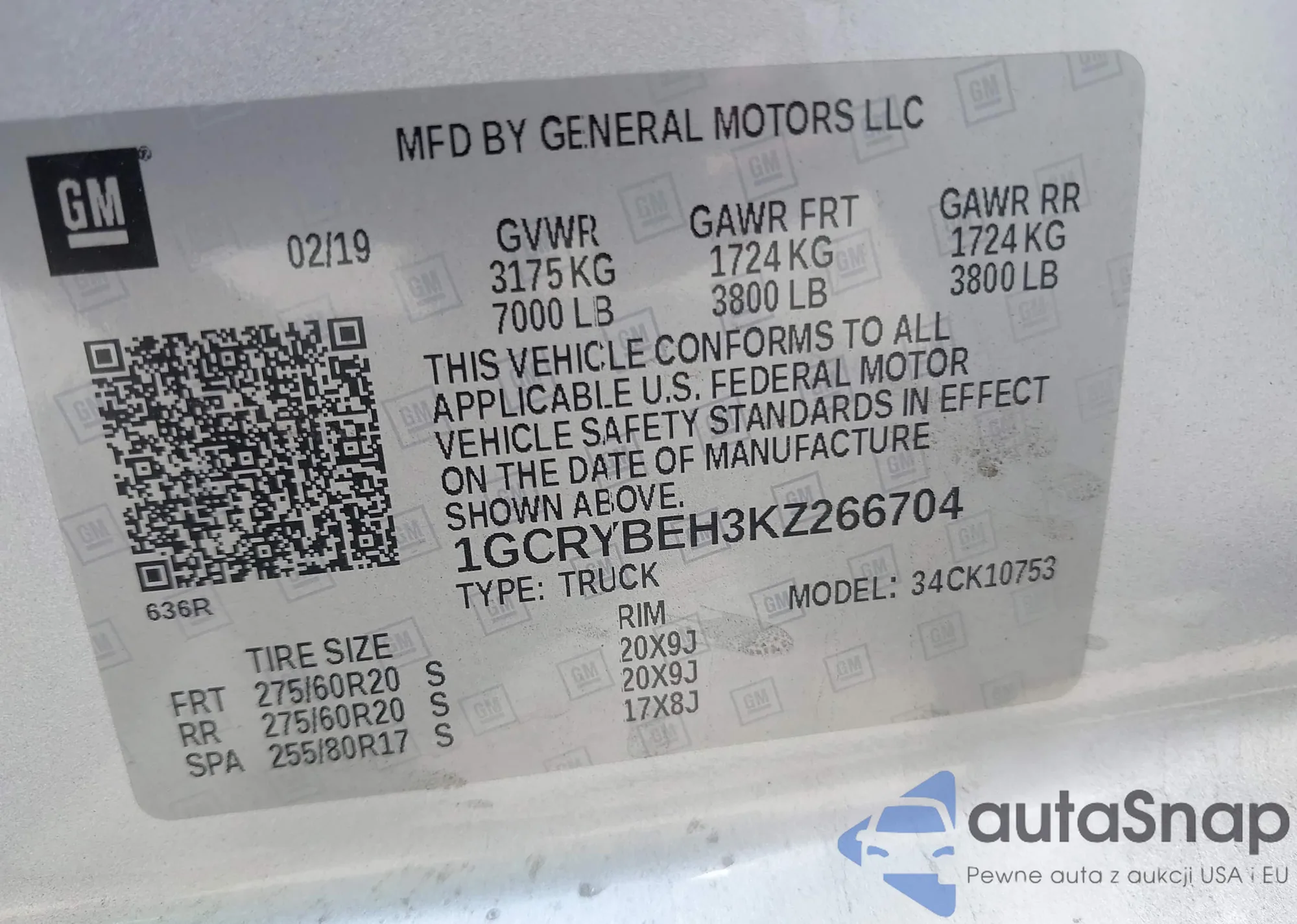 • VIN KL7CJNSB8FB204769