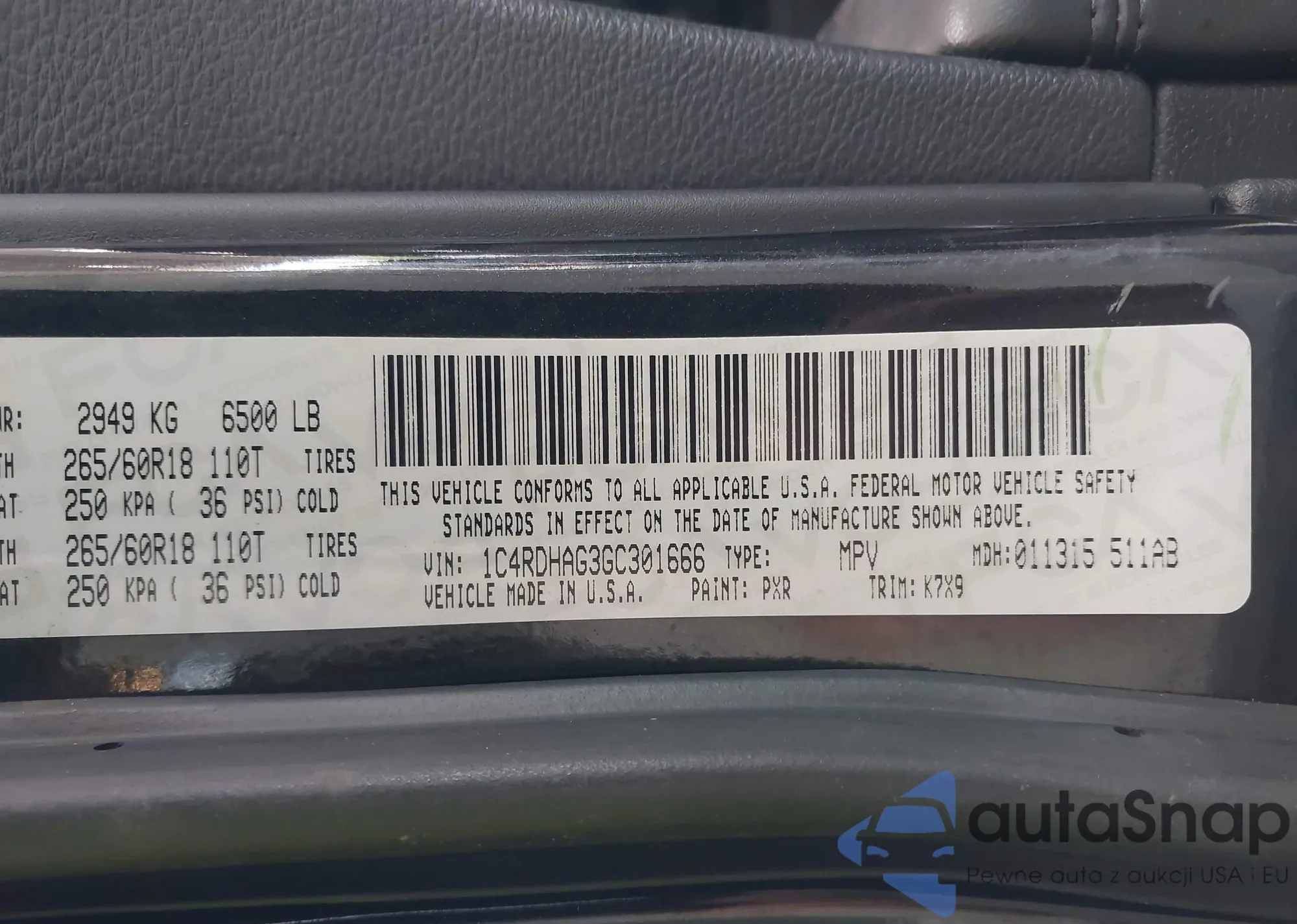 • VIN 1C4RDHAG3GC301666