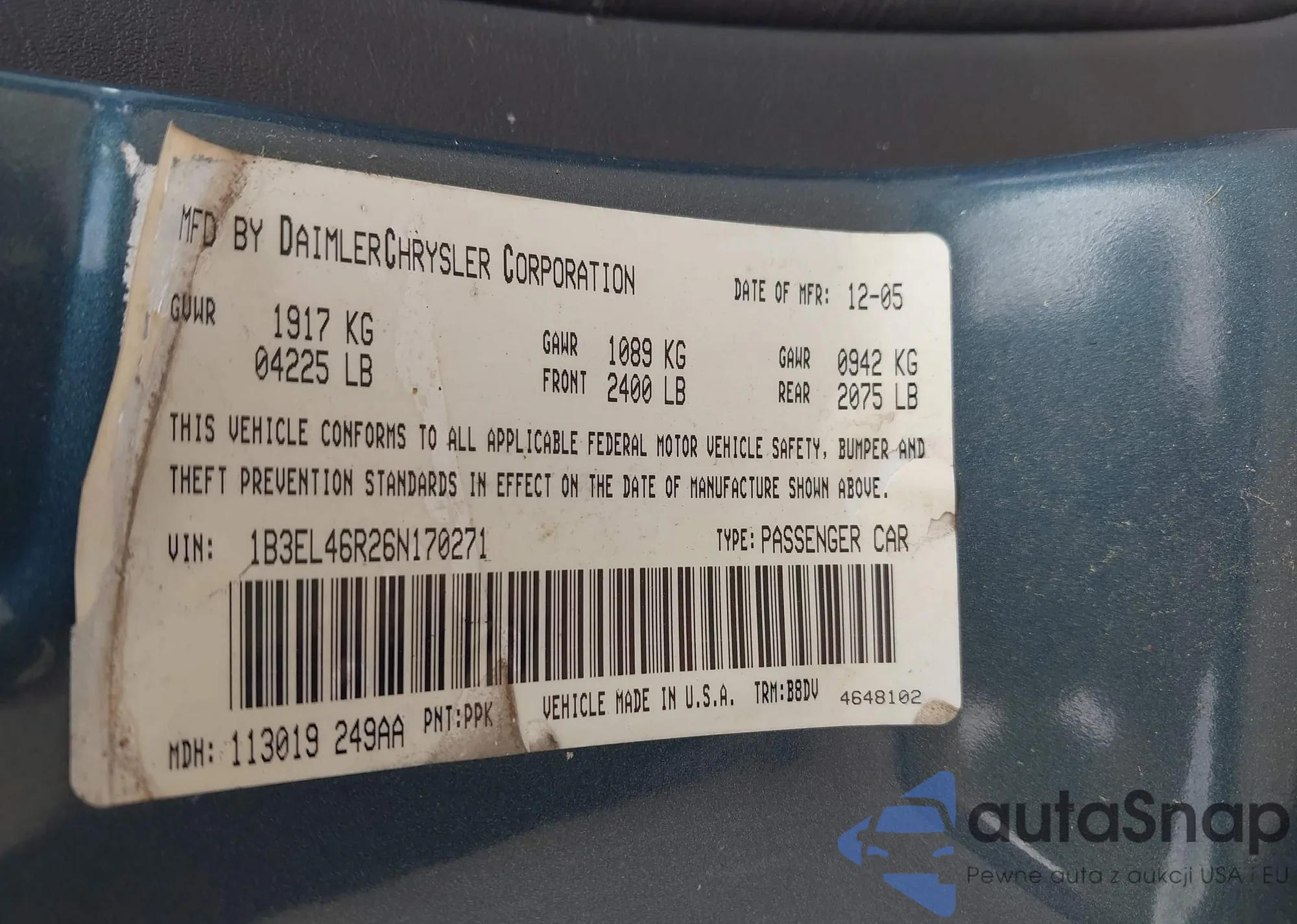 LOT: 42368788 VIN: 1B3EL46R26N170271