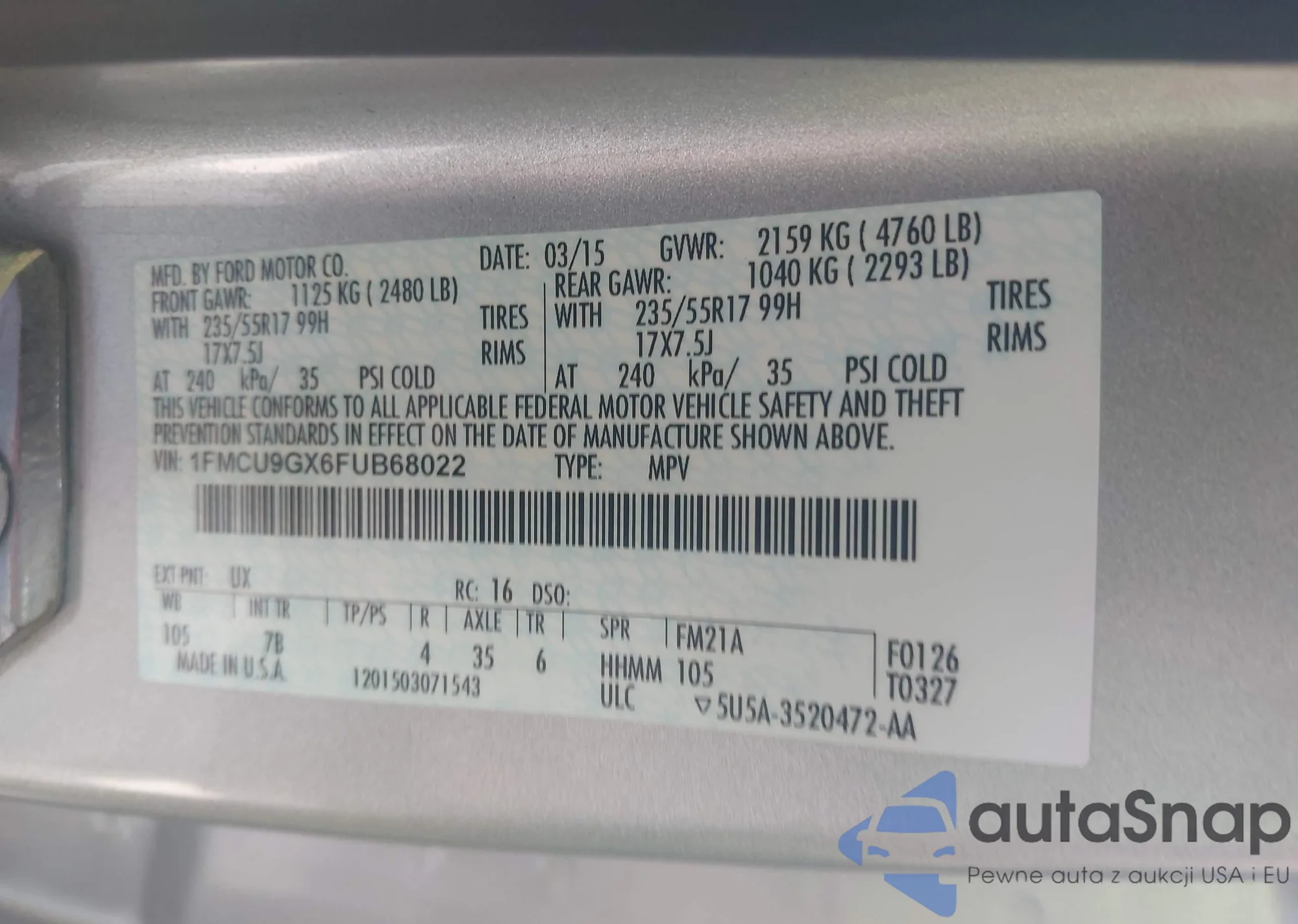 LOT: 42342374 VIN: KL7CJNSB8FB204769