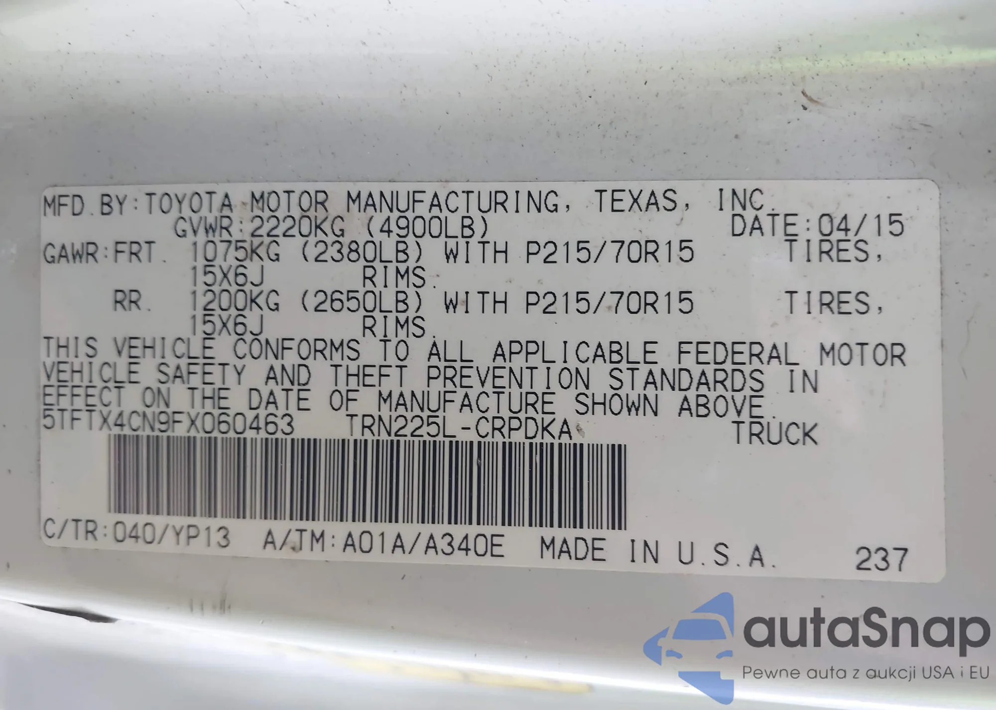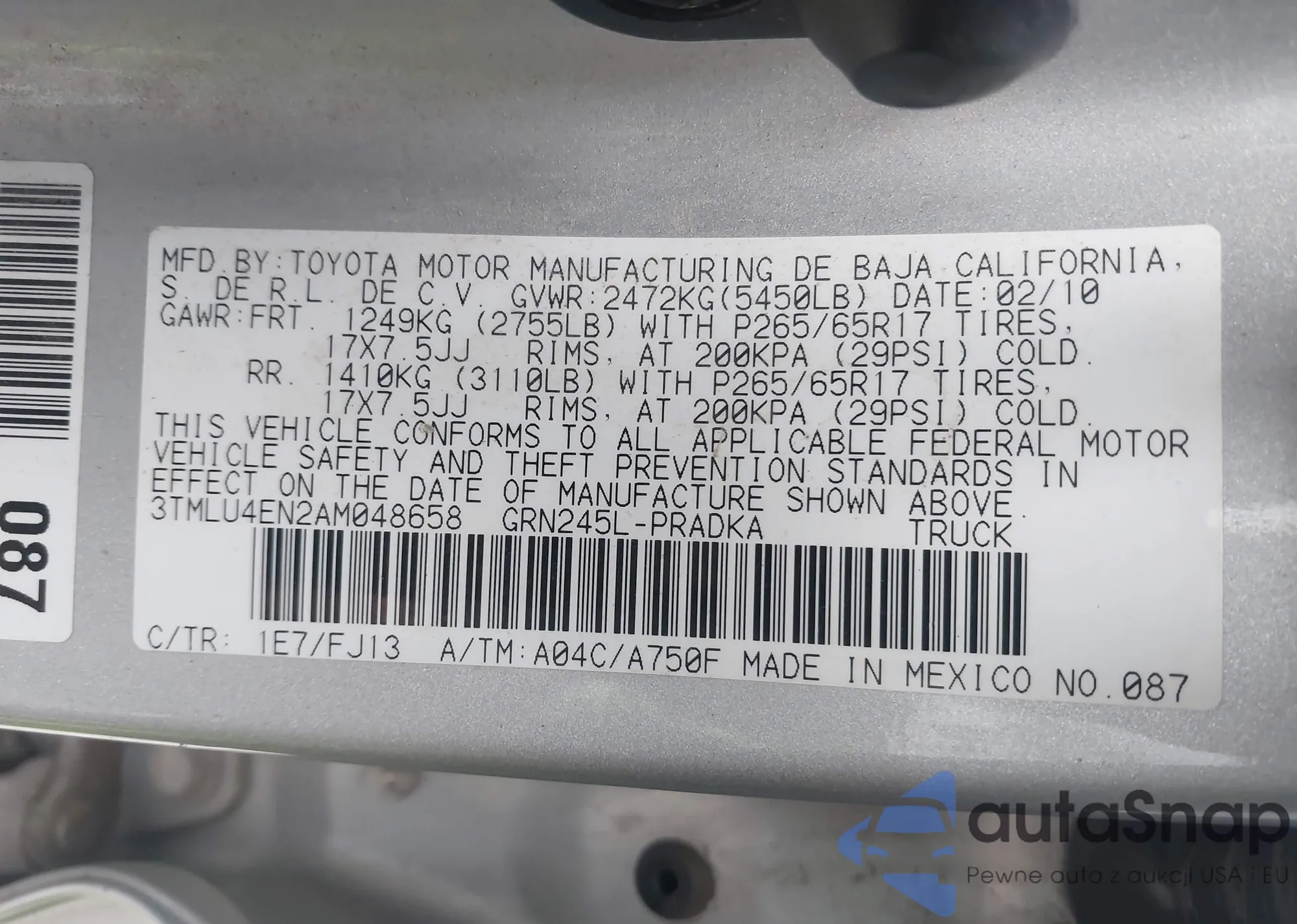 • VIN 3TMLU4EN2AM048658