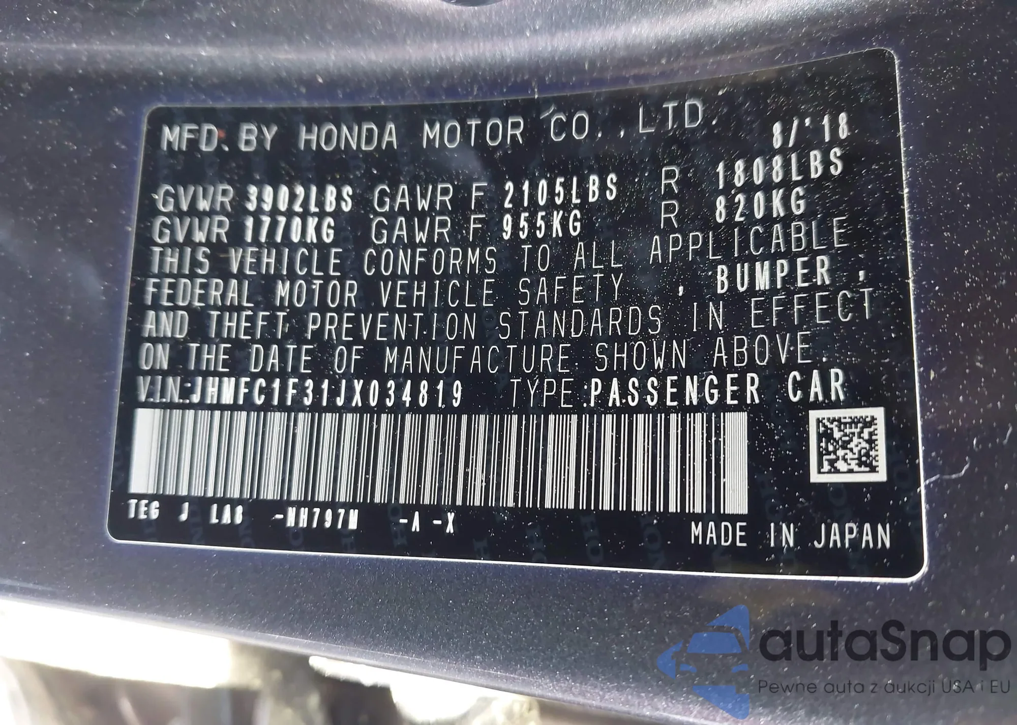 LOT: 42133782 VIN: 2HGFA16659H338528