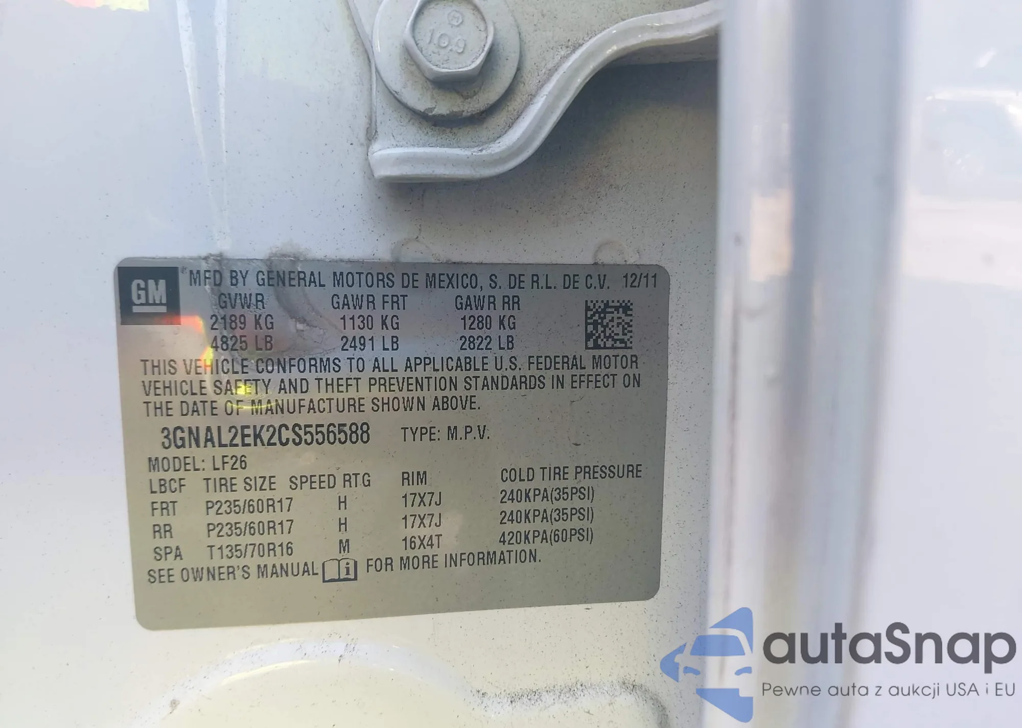 LOT: 42166352 VIN: 2G1125S36F9220169