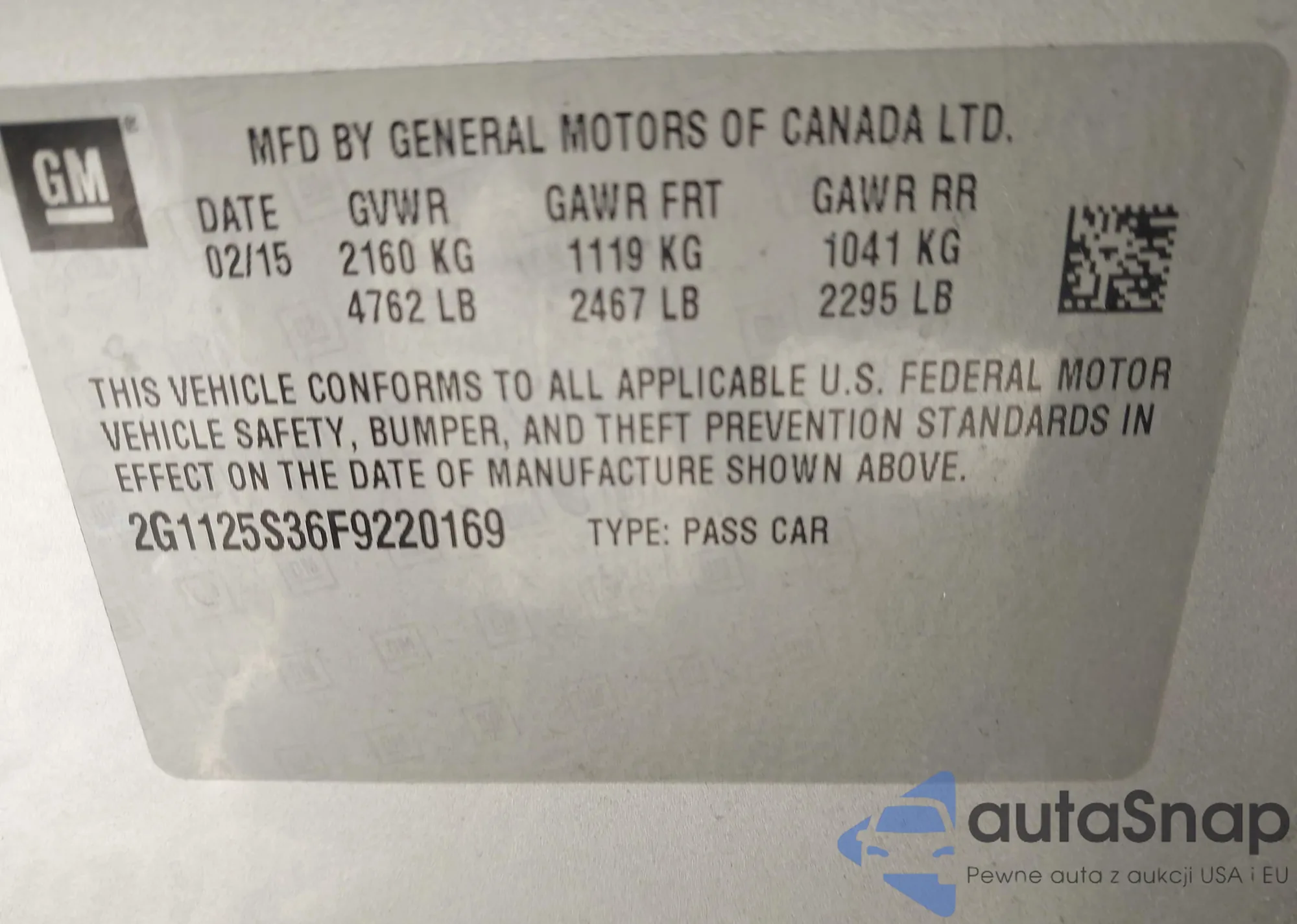• VIN 2G1125S36F9220169