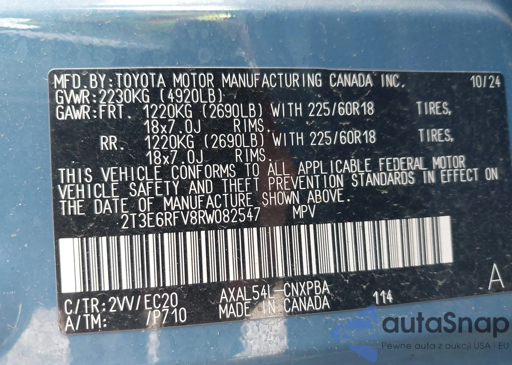 • VIN 2T3E6RFV8RW082547