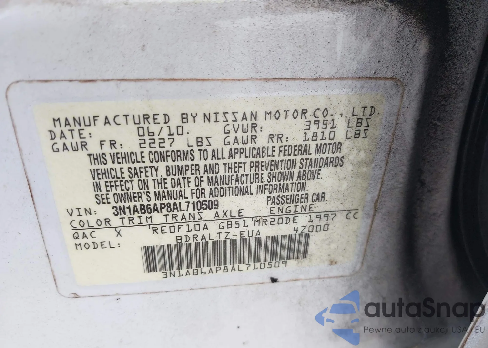 LOT: 42369377 VIN: 3N1AB6AP8AL710509
