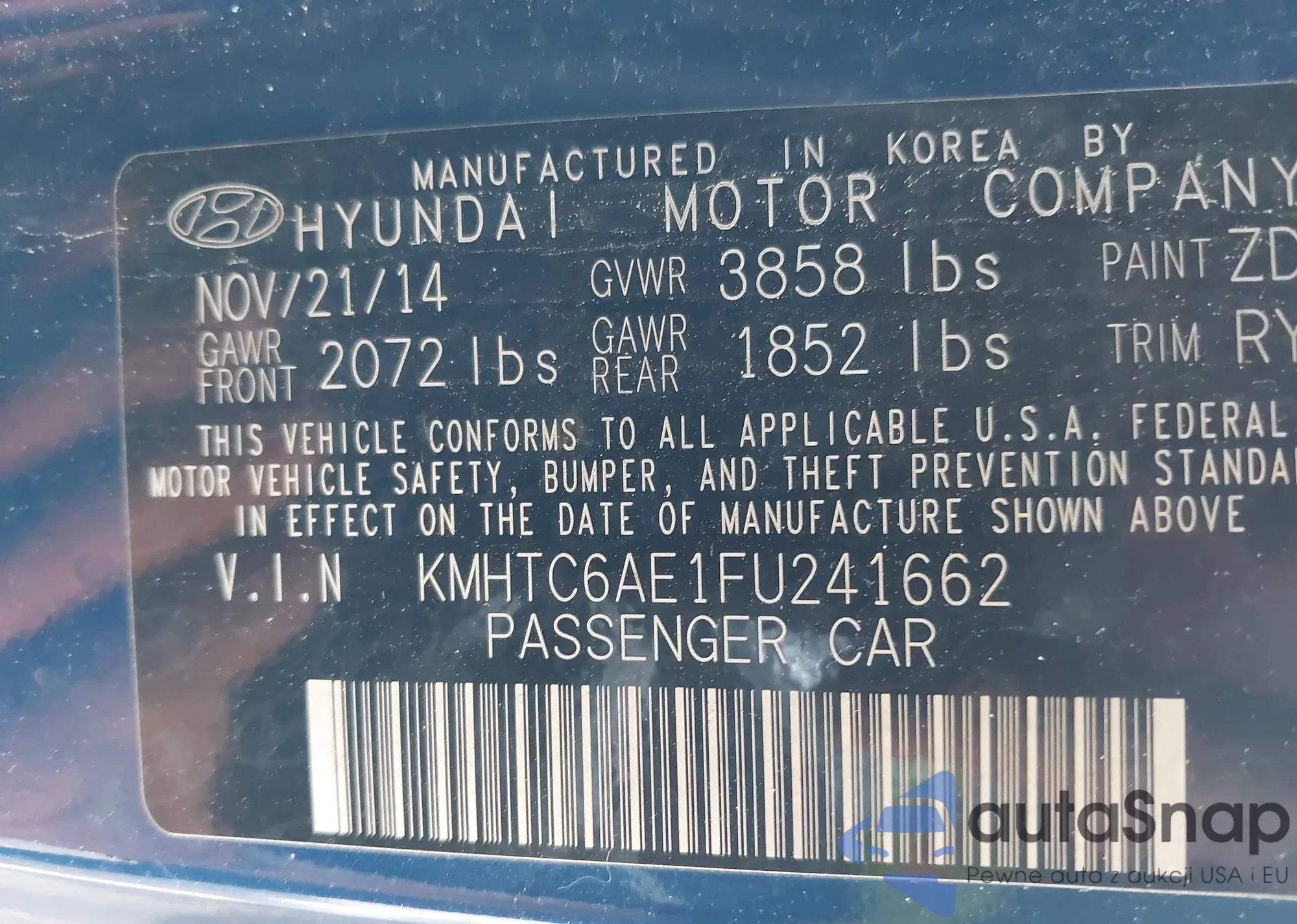 • VIN KMHTC6AE1FU241662