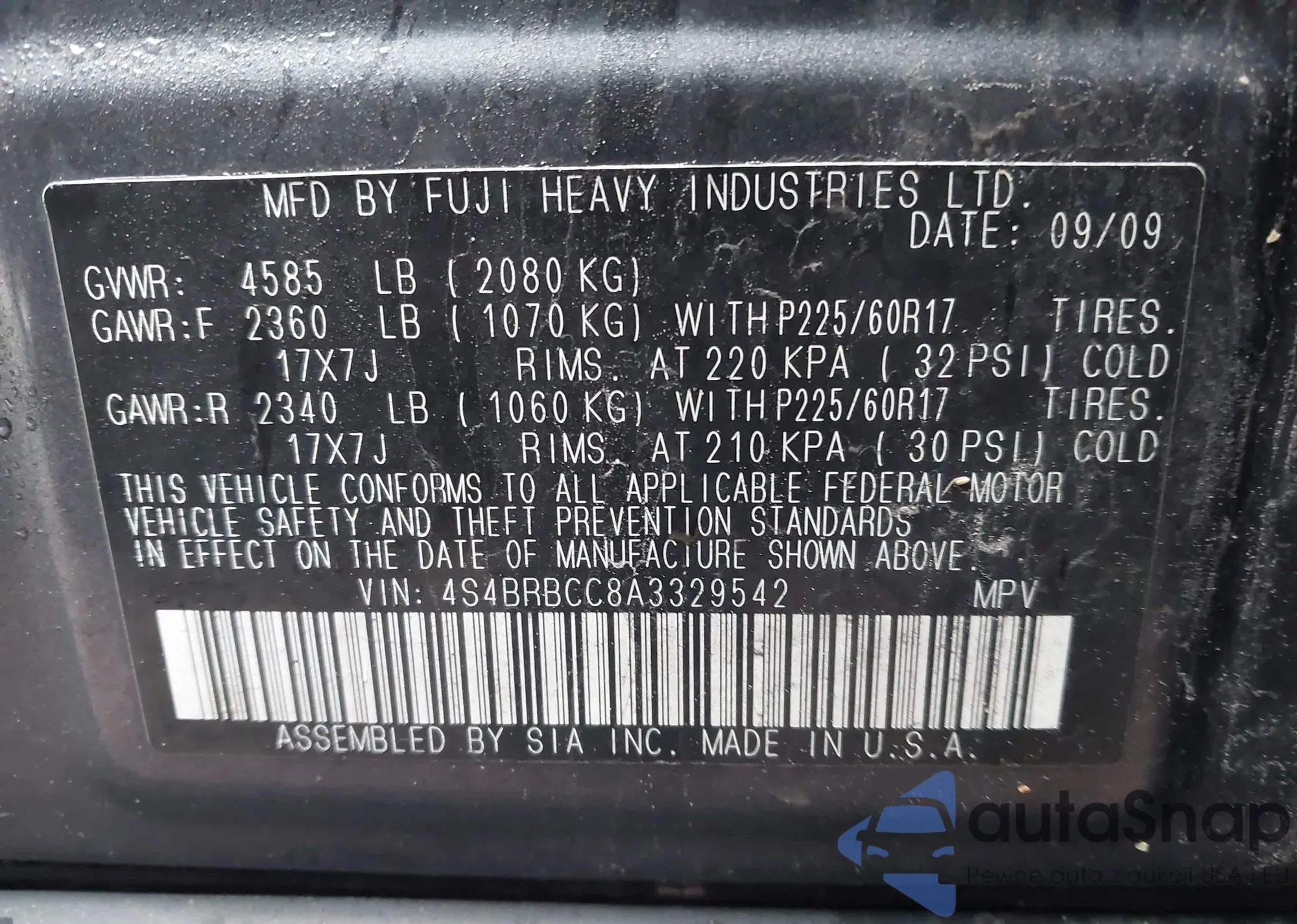 • VIN 4S4BRBCC8A3329542