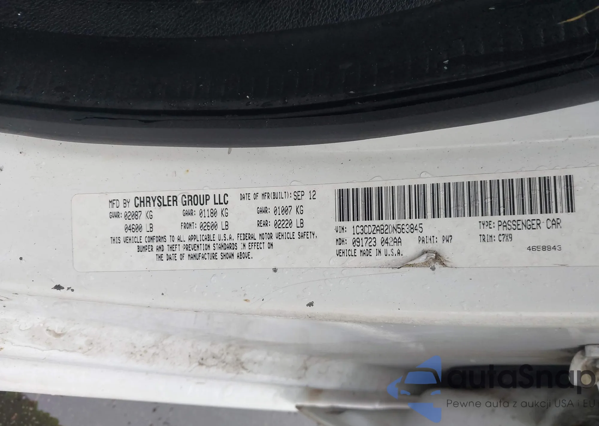 LOT: 42318250 VIN: 1G1PA5SH8D7222030