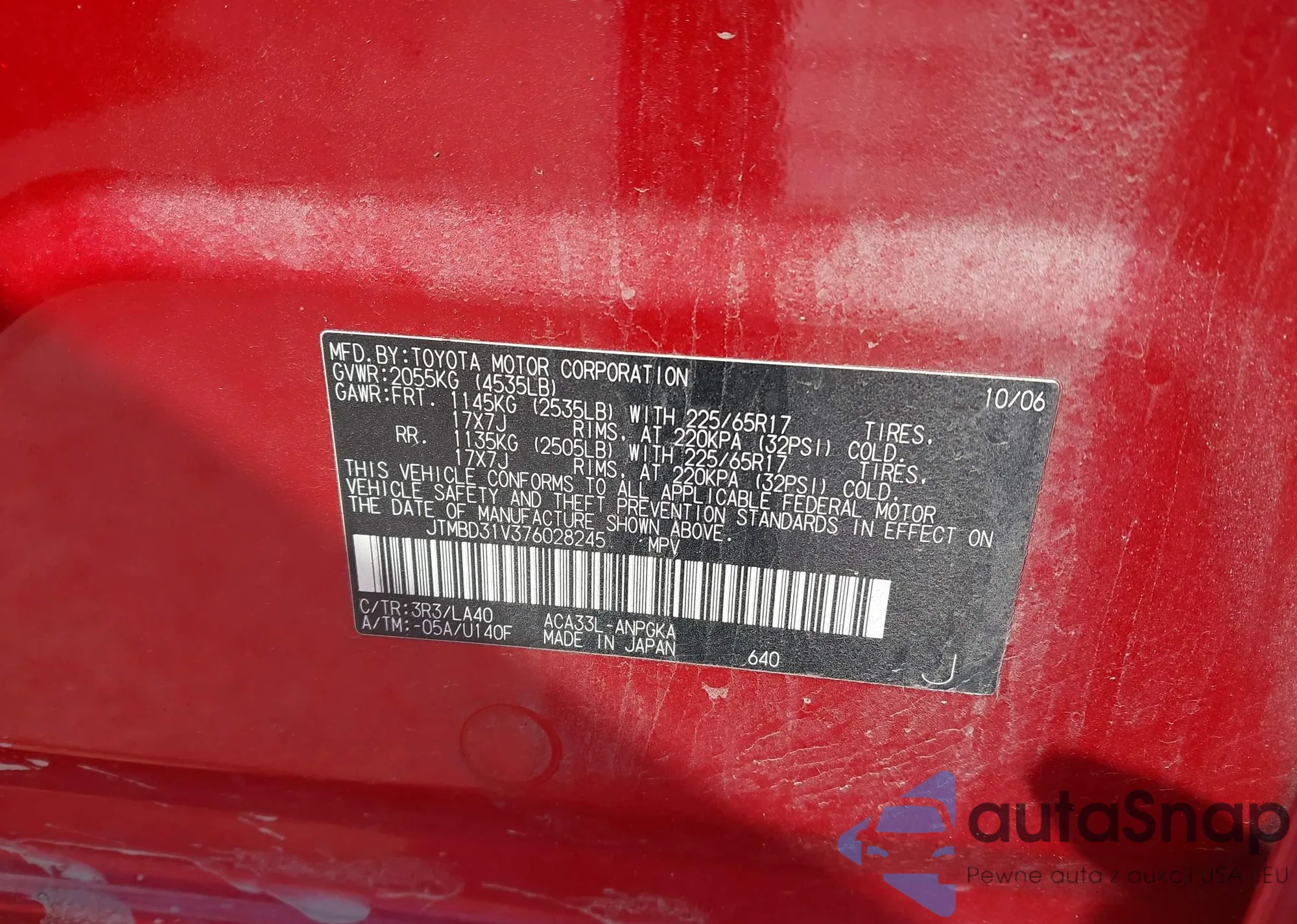 LOT: 41645909 VIN: JTMBD31V376028245