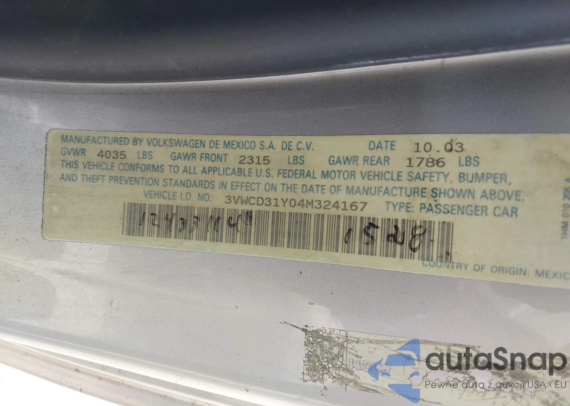 • VIN 3VWCD31Y04M324167