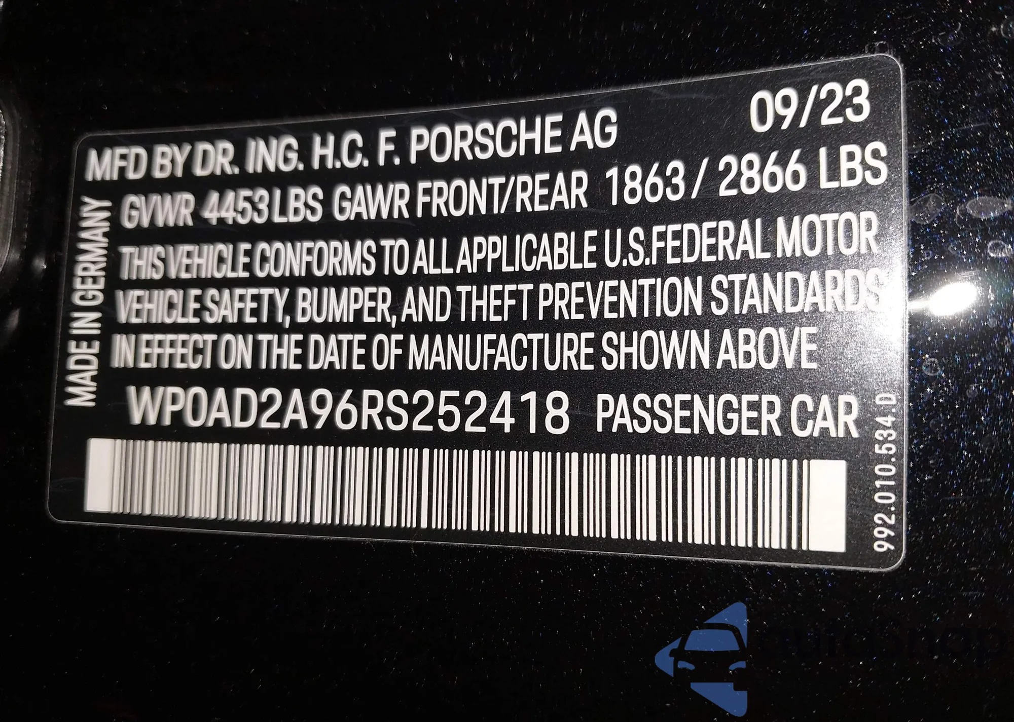 • VIN WP0AD2A96RS252418